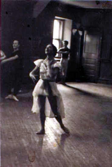 Sometime you would swear she was in another world that the rest of us could never enter. I remember the day she stood in front of the class to demonstrate the adagio. The music started; with her arms in repose she started her plié and then began a port de bra. Watching her demonstrate was like seeing a textbook come to life, but this adagio went on and on, I know everyone in class was enthralled by what they were seeing and, at the same time, they were trying to remember the first part of the adagio. She dance for at least five minutes and when she was finished, she turned to the class, and received a thunderous ovation from her students and said, "Now we do allegro." The students stood with their mouths wide open. There was no mention that we should try to do her adagio. I for one was personally glad that I didn't have to try to compete with her.
