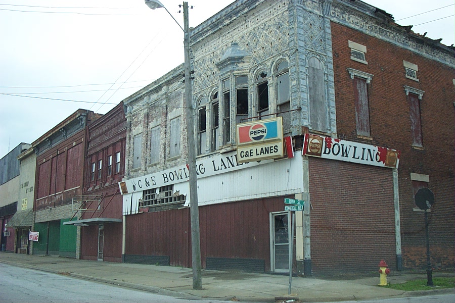 In 2008 the population of Cairo was around 3,600 residents. Efforts to capitalize on Cairo's lovely remaining Gilded Age architecture for tourism were not very successful and the town has few employment opportunities. The exodus left Cairo's Main Street a ghost town which remained eerily intact when I visited in 2002.