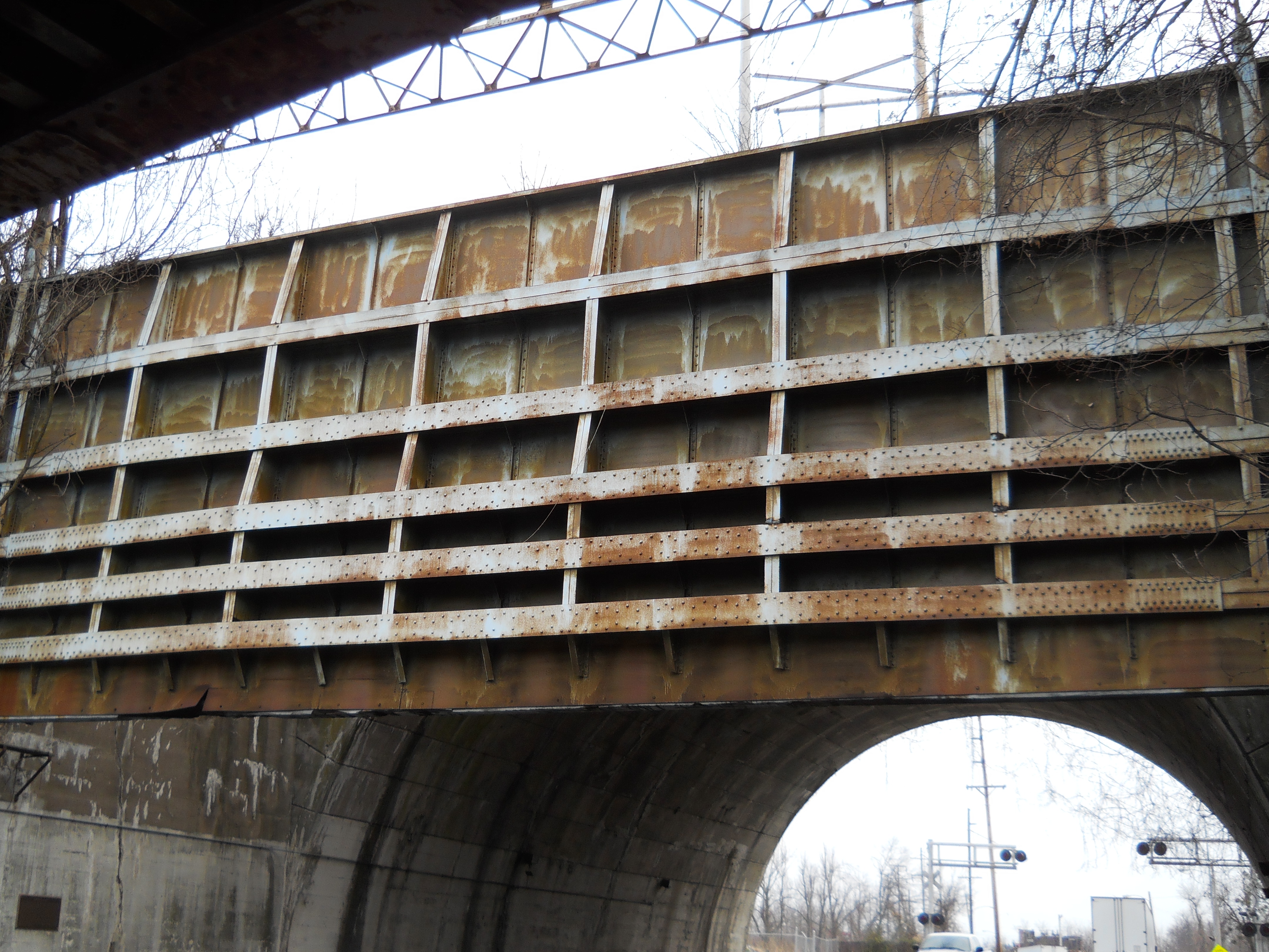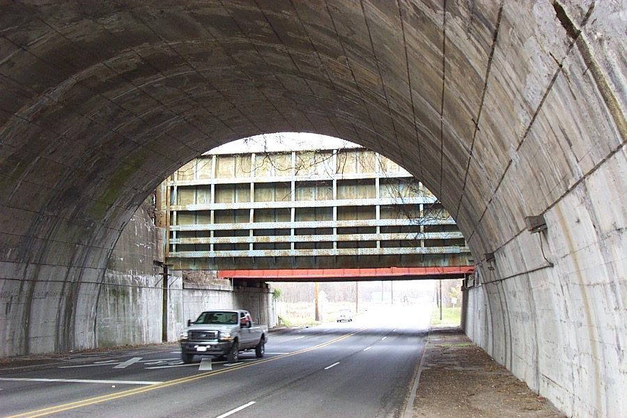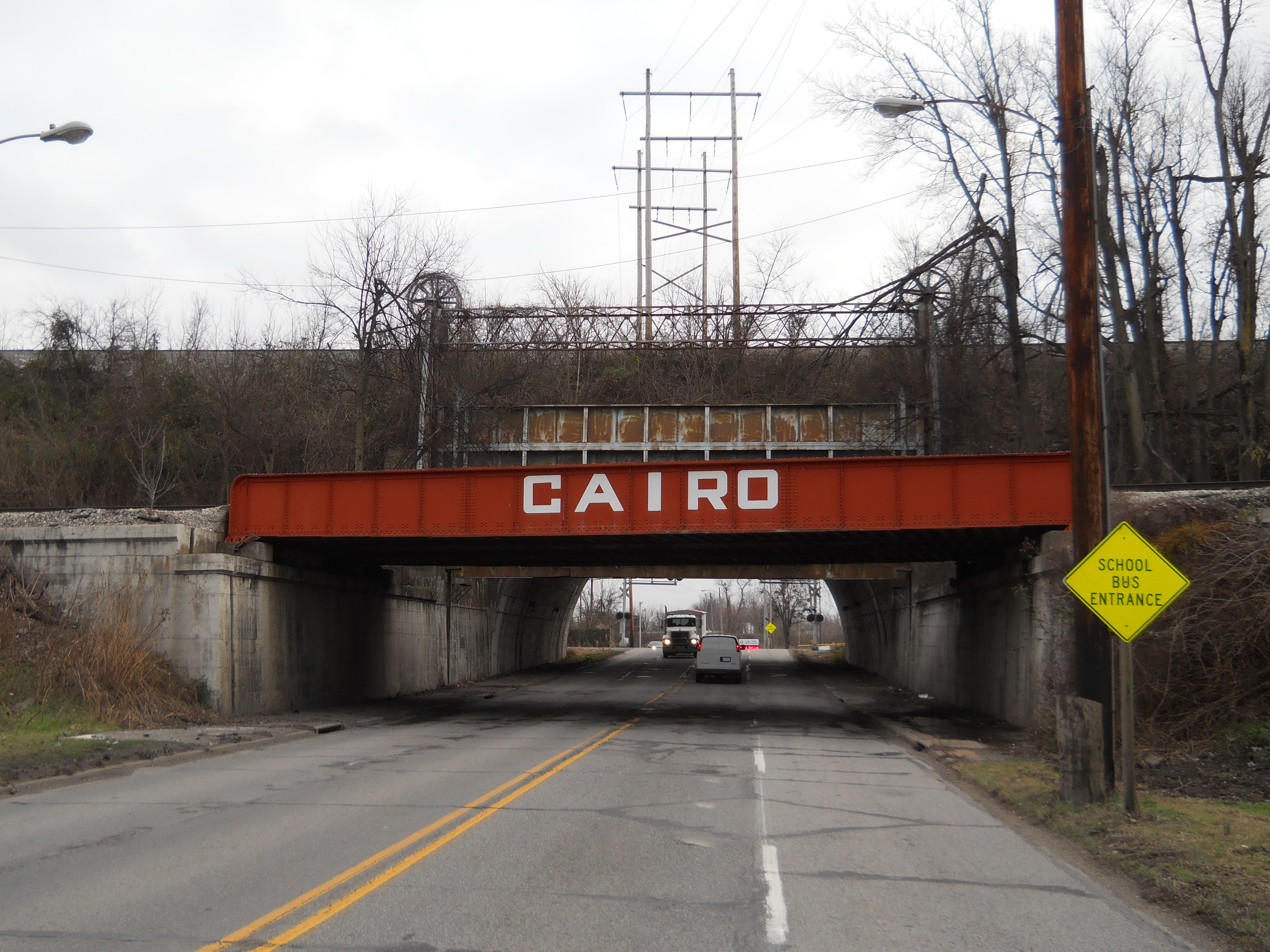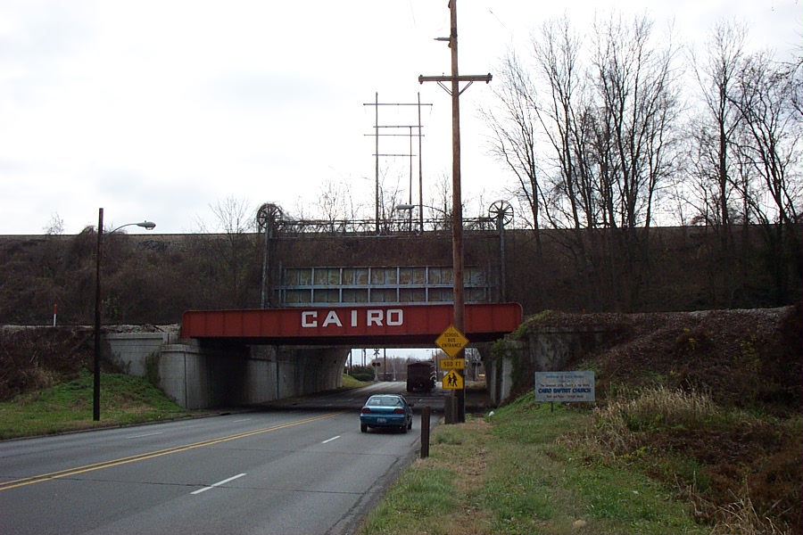 Cairo, IL is located on a peninsula between the Ohio and Mississippi rivers and has needed levees for flood protection since its inception. Tall levees were constructed during the Civil War to hold back the flood waters, which, with sporadic improvements, have held to this day through numerous major floods. The Cairo Gate can seal a tunnel (dated 1903) that takes US Highway 51 through the northern levee. The levee also serves as an approach to a railroad bridge over the Ohio River and the gate is situated between the levee and a smaller railroad bridge (dated 1904) which is painted red with "CAIRO" in large white letters.