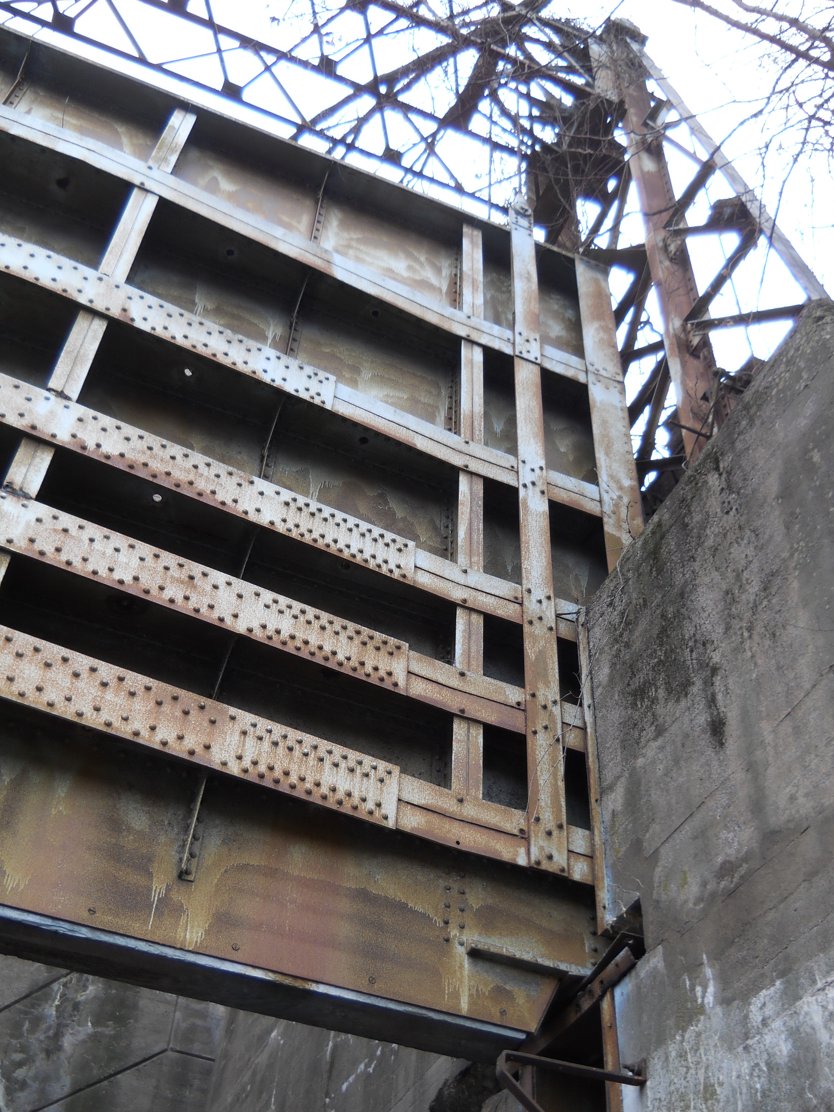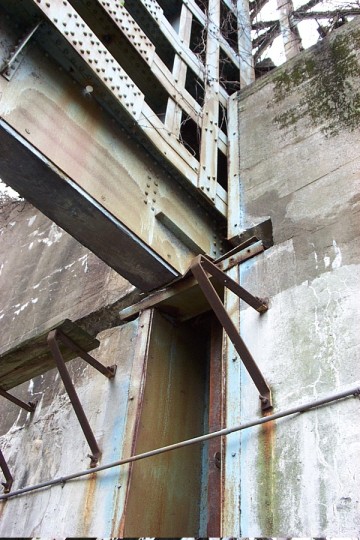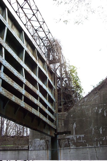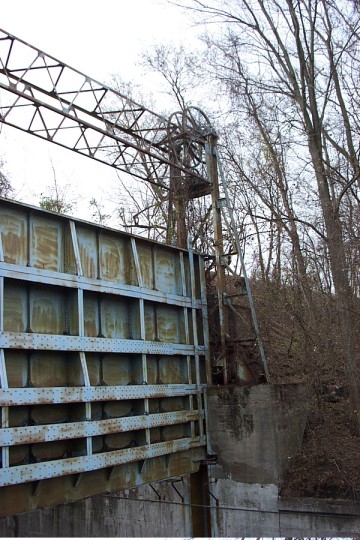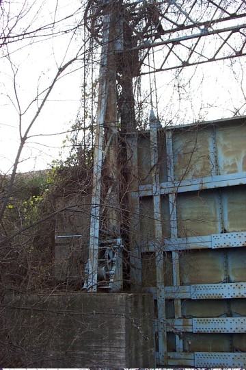 From the appearance of the gate and the lifting mechanism, when I first visited in 2002 it didn't appear to have been closed in the recent past. Heavy spring flooding in 2011 led to activation of the New Madrid Floodway, which involved flooding upstream fields to lower the river level and save Cairo from flooding. However, the old Cairo flood gate had obviously not been moved, confirming my suspicion that it was no longer needed or operational.