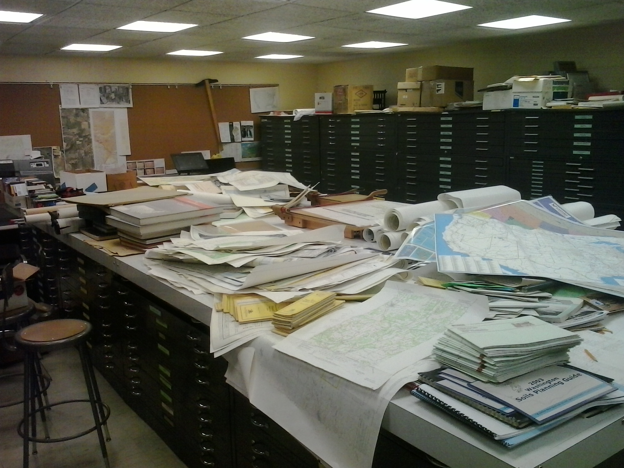 My 2016-2017 academic year at Eastern Washington University was a transitional period for the Geography Department. The 40+ year careers of two recently-retired faculty covered a major technological and epistemic change in academic geography. Upon my arrival, the obvious physical legacy of that change was a collection of paper materials that had been accrued over the past half century with minimal organization and limited utility in a new electronic data era.