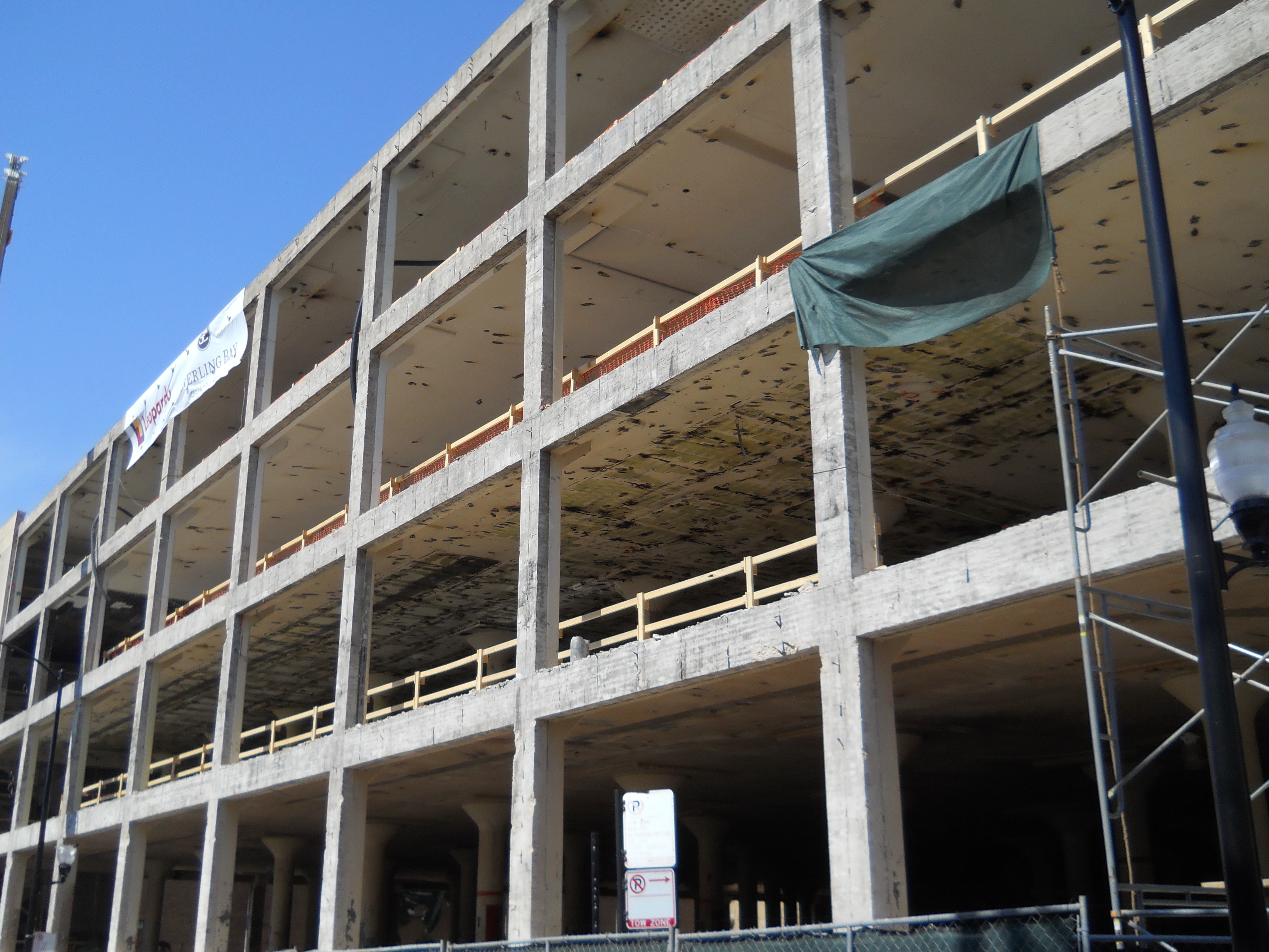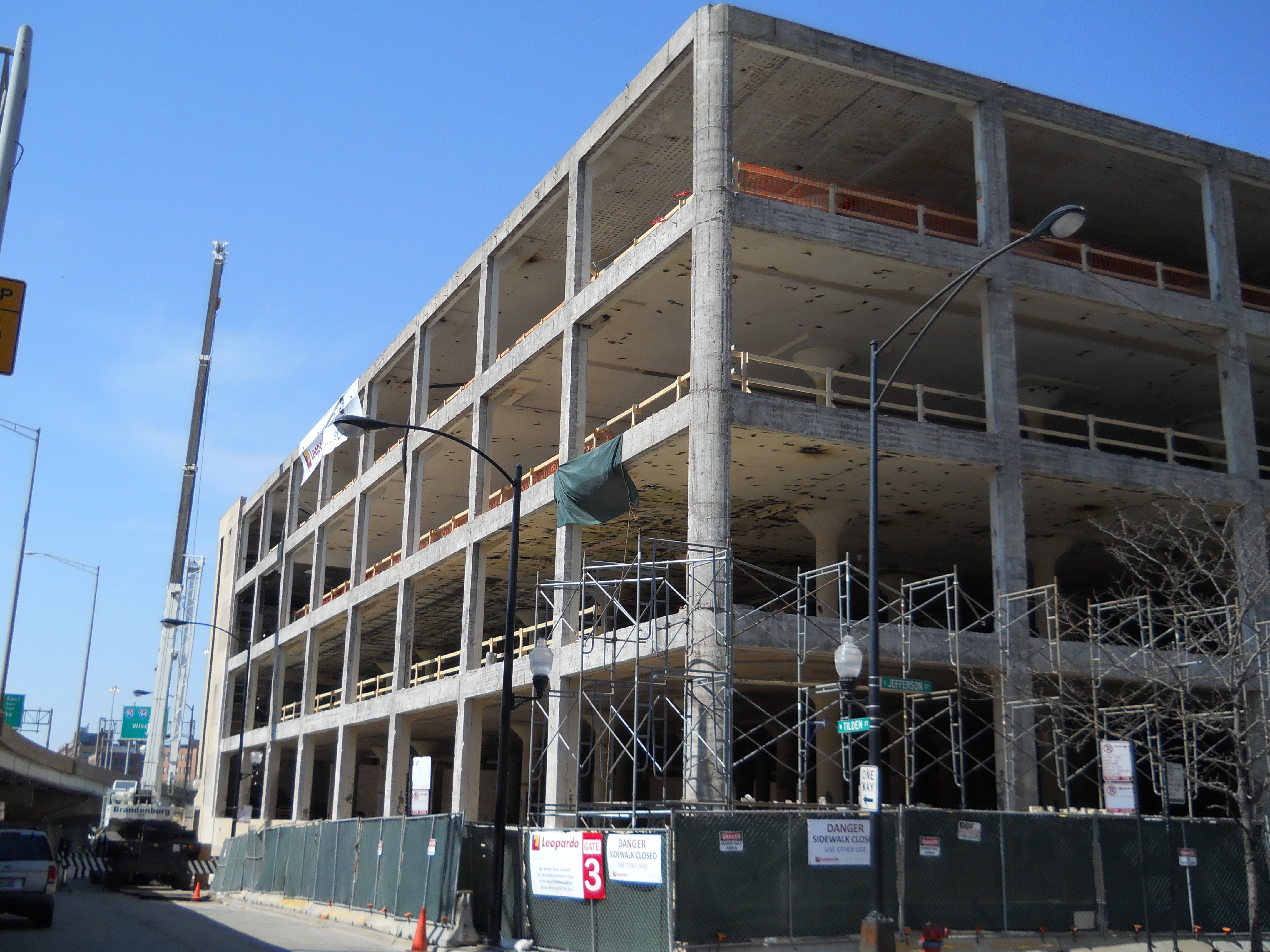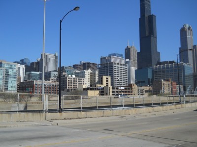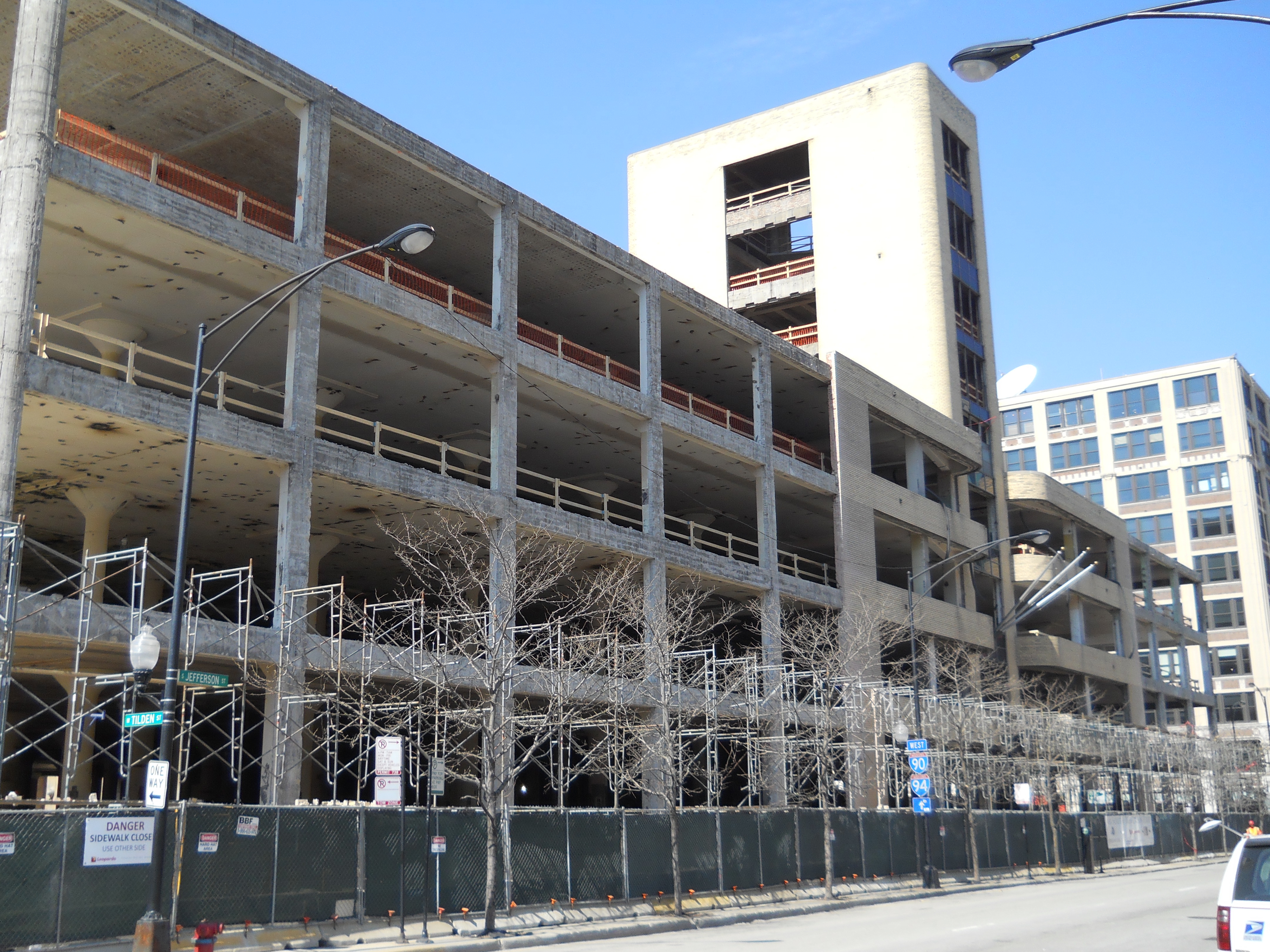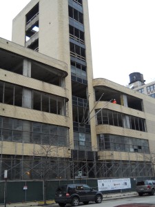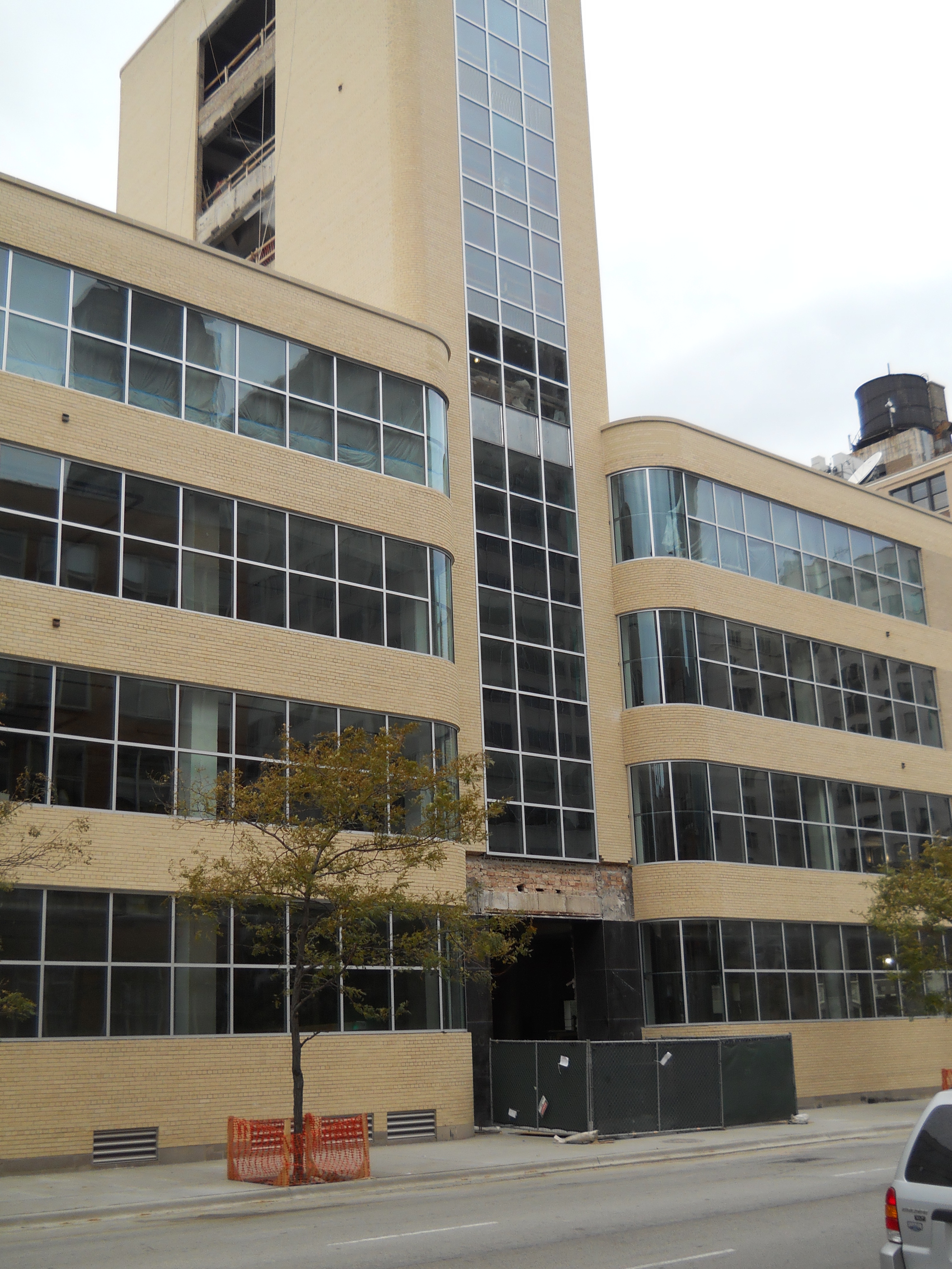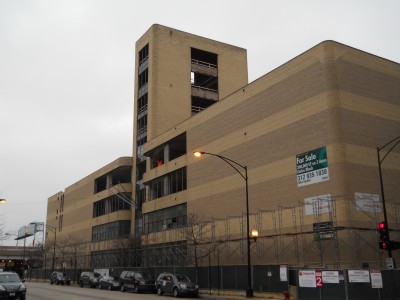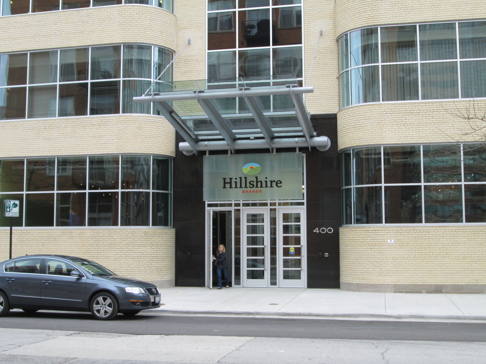 This sturdy, 270,000 square-foot building in the West Loop Canal-Congress TIF District was built in 1946 for the Newman-Rudolph Lithographing Company. The Moderne skin was stripped in a gut renovation for the Sara Lee as the headquarters for their new North American Foodservice (meat) division. ( ref, ref)