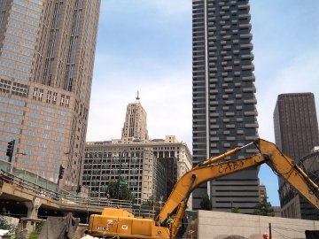 The Chicago Board of Trade Building (141 West Jackson Boulevard) was designed by the firm of Holabird and Root and opened in 1930. A distinguishing feature of the Art Deco building is a faceless stainless-steel statue of Ceres (goddess of agriculture) that caps the building.