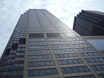 The Chicago Mercantile Exchange building dates from 1987. The serrated corner maximize corner-office space. The center area between the two towers housed a massive trading floor.