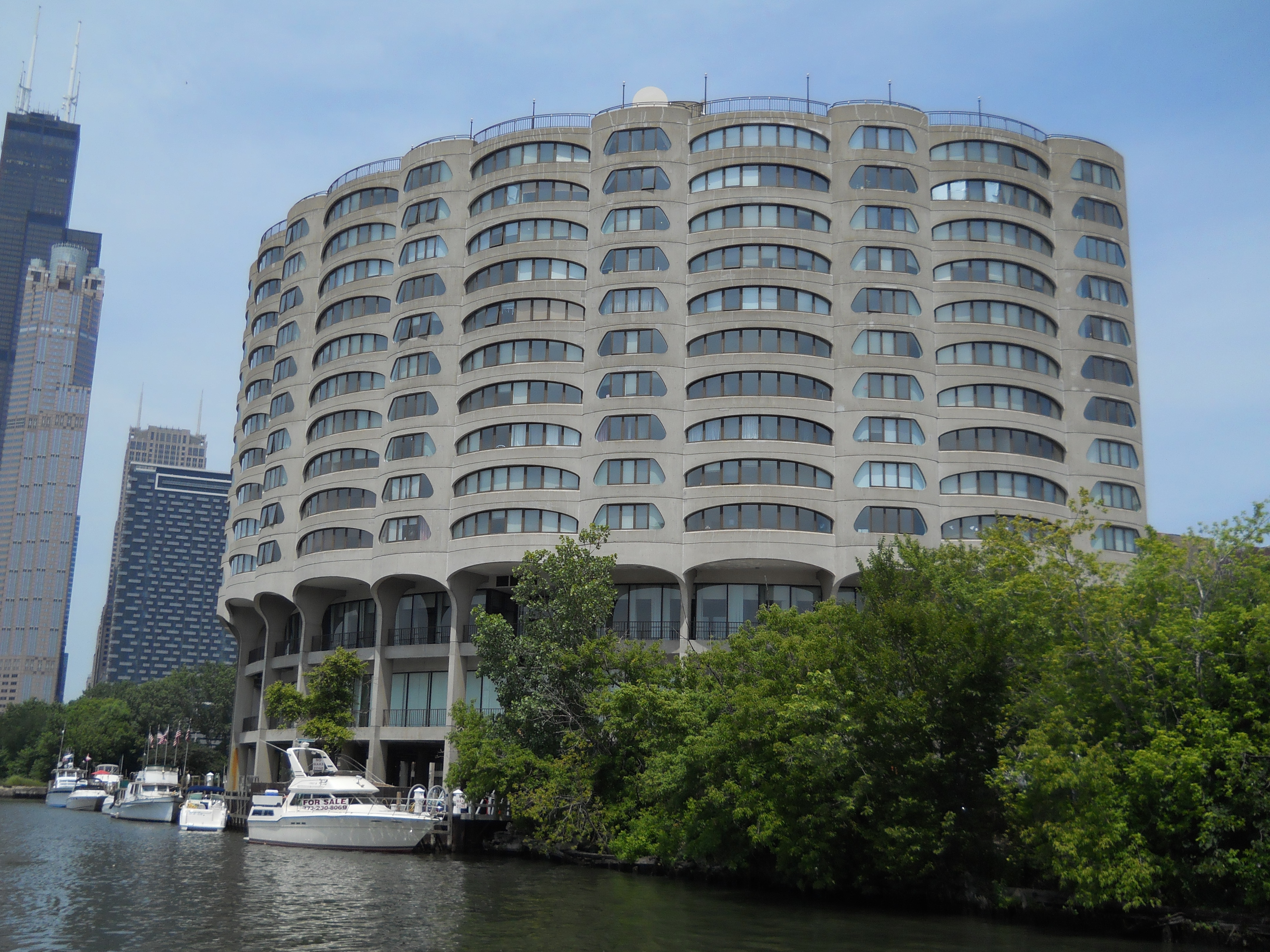 River City was designed by Bertrand Goldberg and opened in 1986. The style clearly echoed his Marina City buildings that had opened 22 years before.