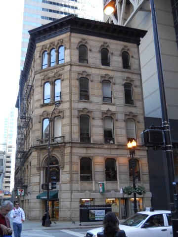 Washington Block at 40 North Wells (at Washington) dates from 1873 and is one of the few survivors from the years immediately following the great 1871 Chicago fire.