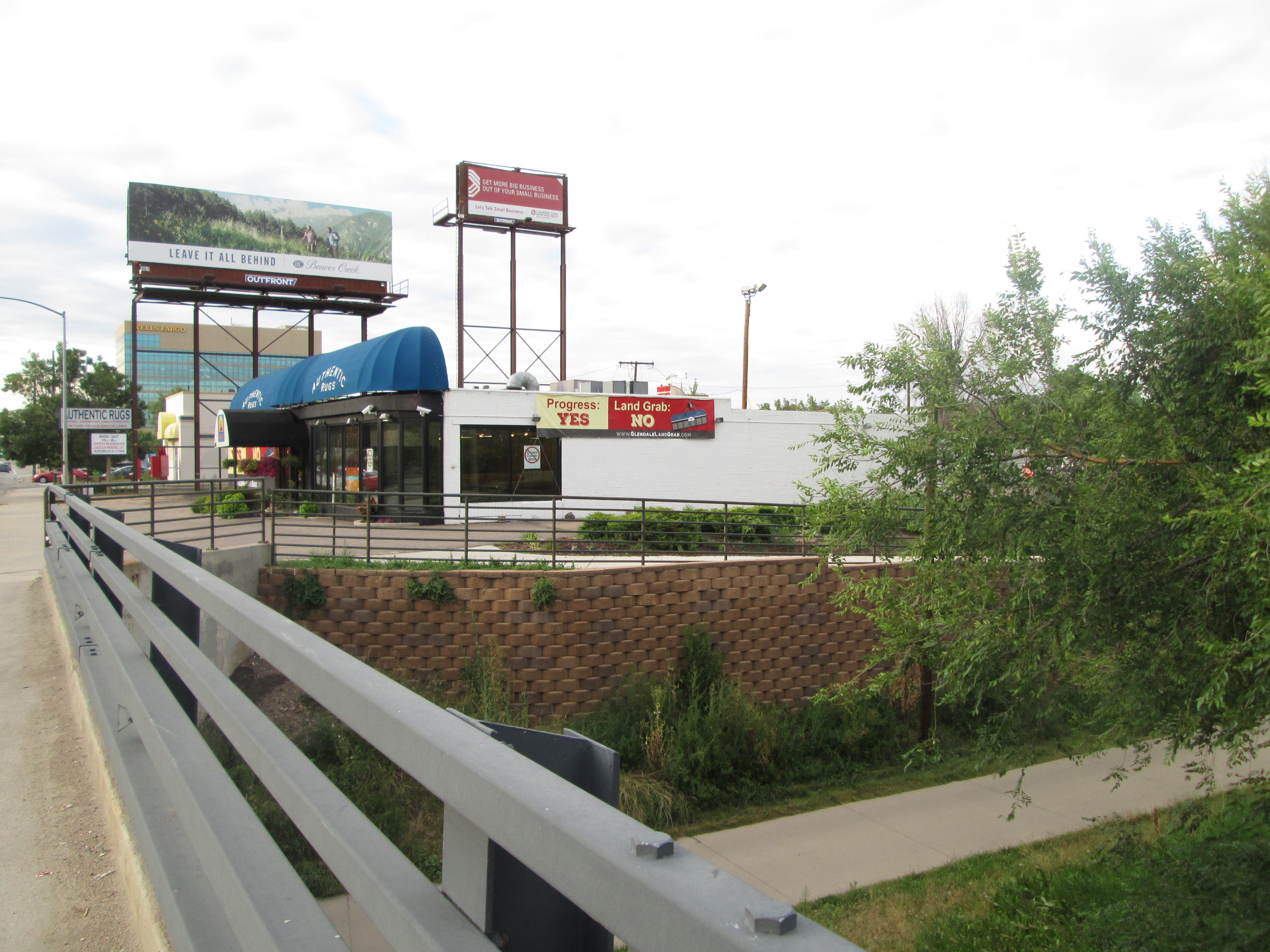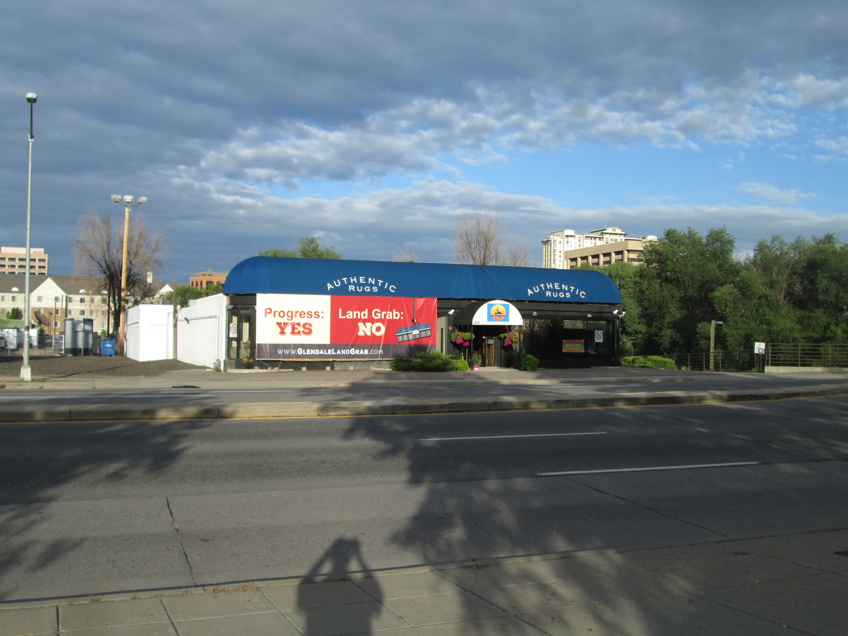 Five-acre site of a nasty (and possible eminent-domain) dispute pitting a small business owner against the city and private plans for a 42-acre, $175 million dining and entertainment complex on the banks of Cherry Creek in Glendale.