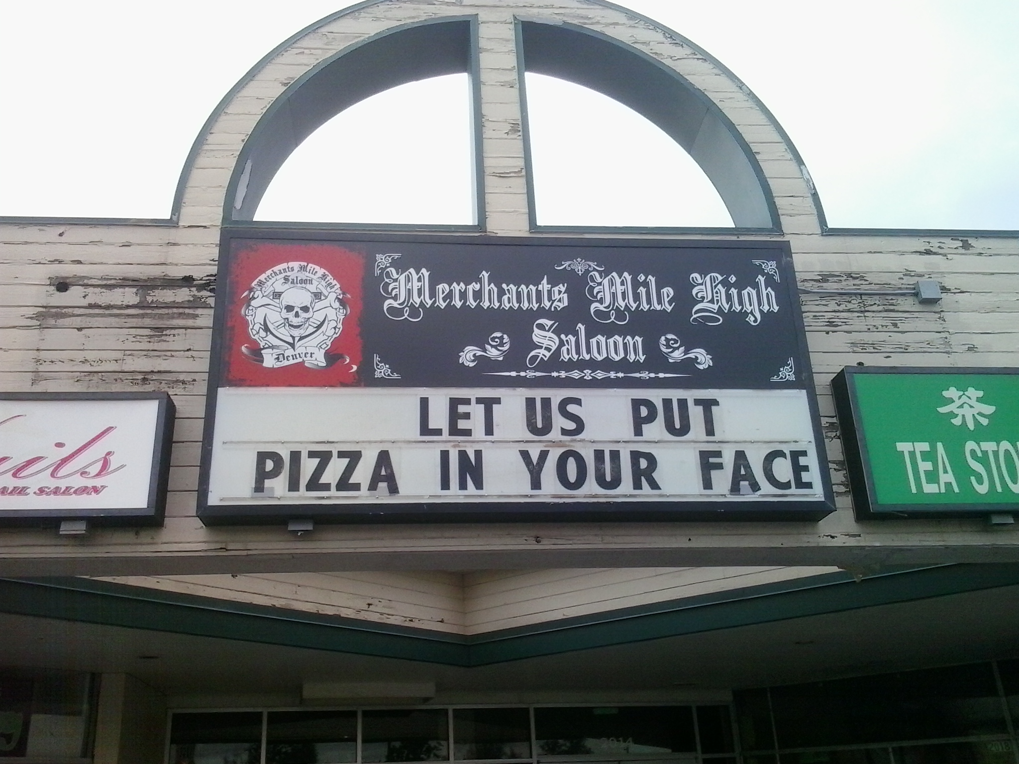 Let Us Put Pizza In Your Face, Merchants Mile High Saloon, 2014 S University Blvd