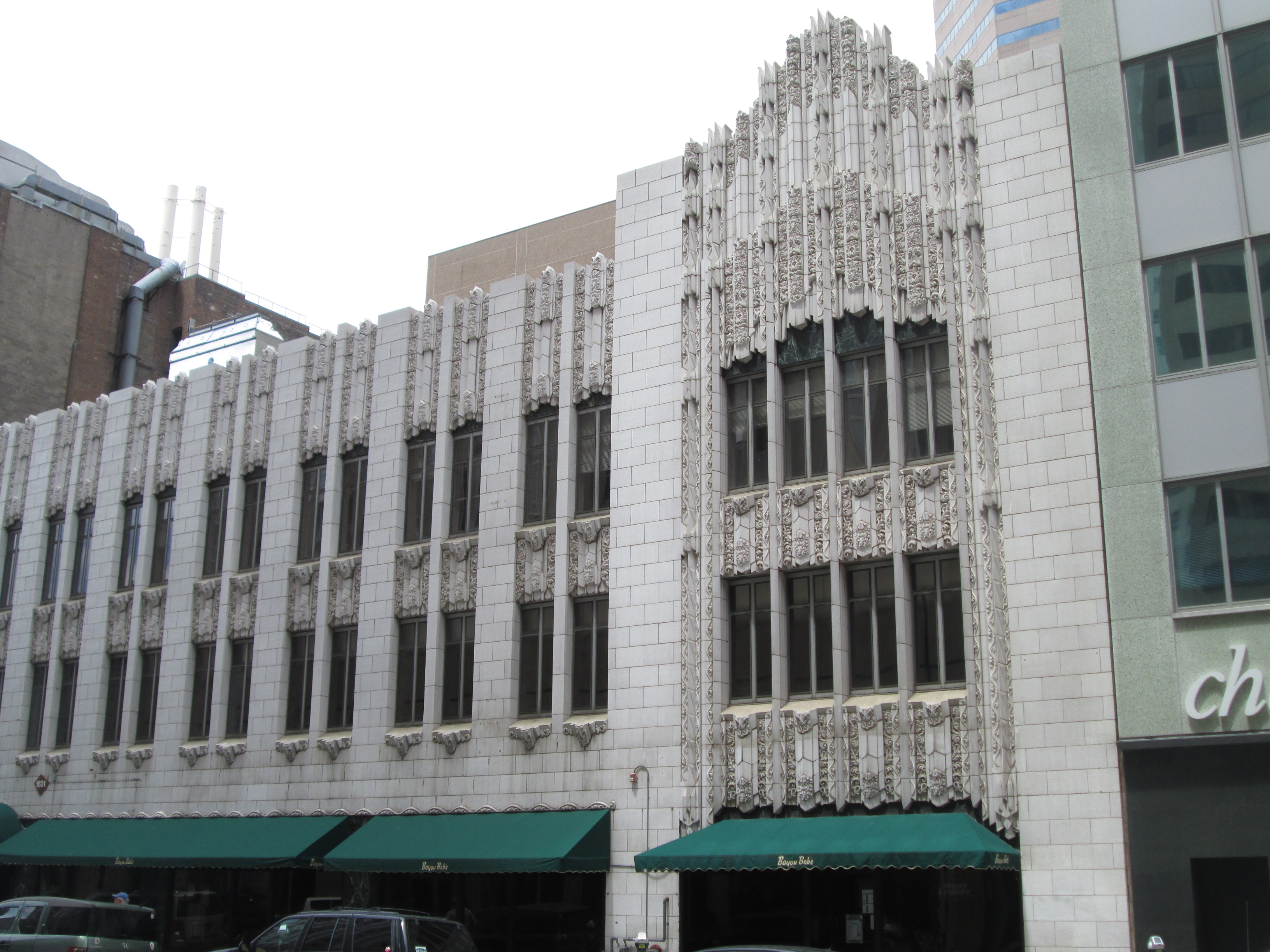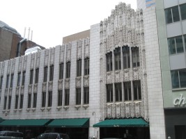 Called "Colorado's best example of the Art Deco style," the Paramount Theater designed by Temple Buell featured the work of the Denver Terra Cotta Company. The theater opened in 1930 with the [sound] film Let's Go Native, starring Jeannette MacDonald and Jack Oakie. Publix, Paramount Picture's operating company, sited the theater to compete with more than a dozen other movie theaters in the downtown area. The building was finished during a transitional time in the motion picture business when silent films were giving way to talkies. Although the composition of the theater was altered to reflect this change, it was still equipped with luxuries such as a splendidly ornamented lobby, indirect lighting, and a neon marquee. The Paramount also housed a feature of silent movie days, a Publix One Wurlitzer organ equipped with twin consoles. Among the many outstanding ornaments of the Art Deco style interior were Vincent Mondo's tapestries, a vaulted sunburst ceiling, cut glass chandeliers, Egyptian lights, and Italian marble. The Paramount is the only remaining historic theater of the many that once drew audiences to Downtown Denver.