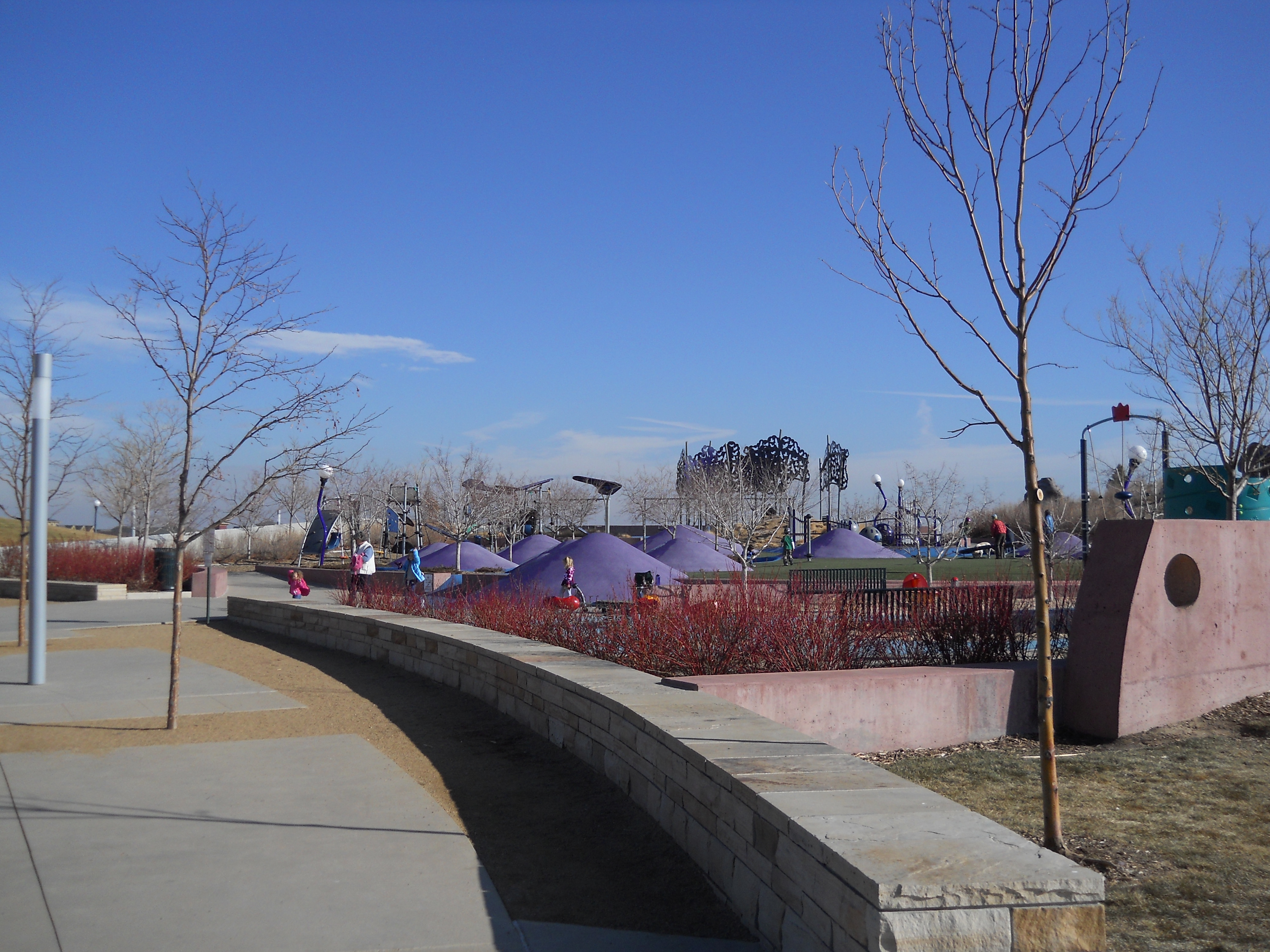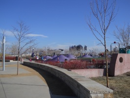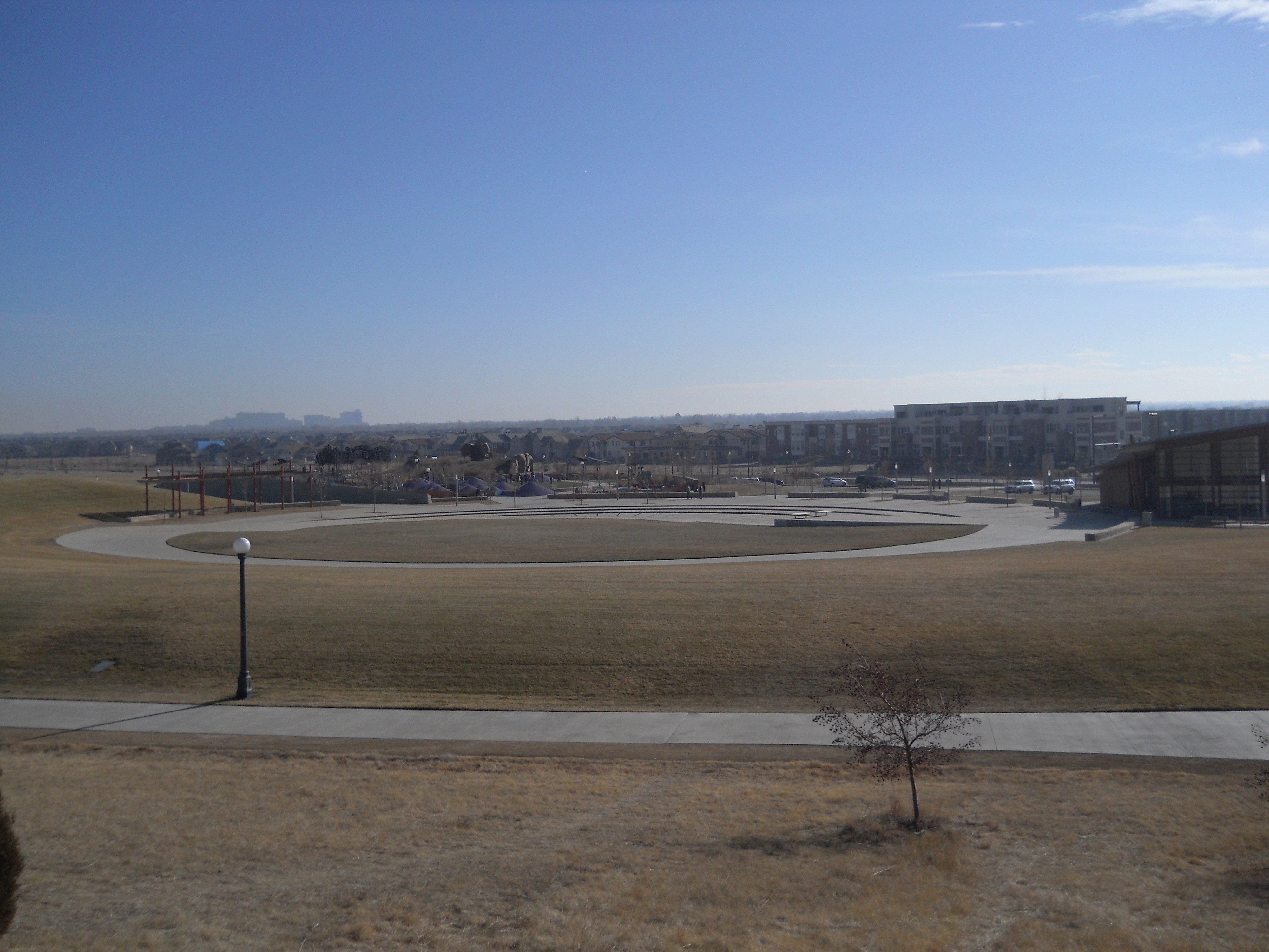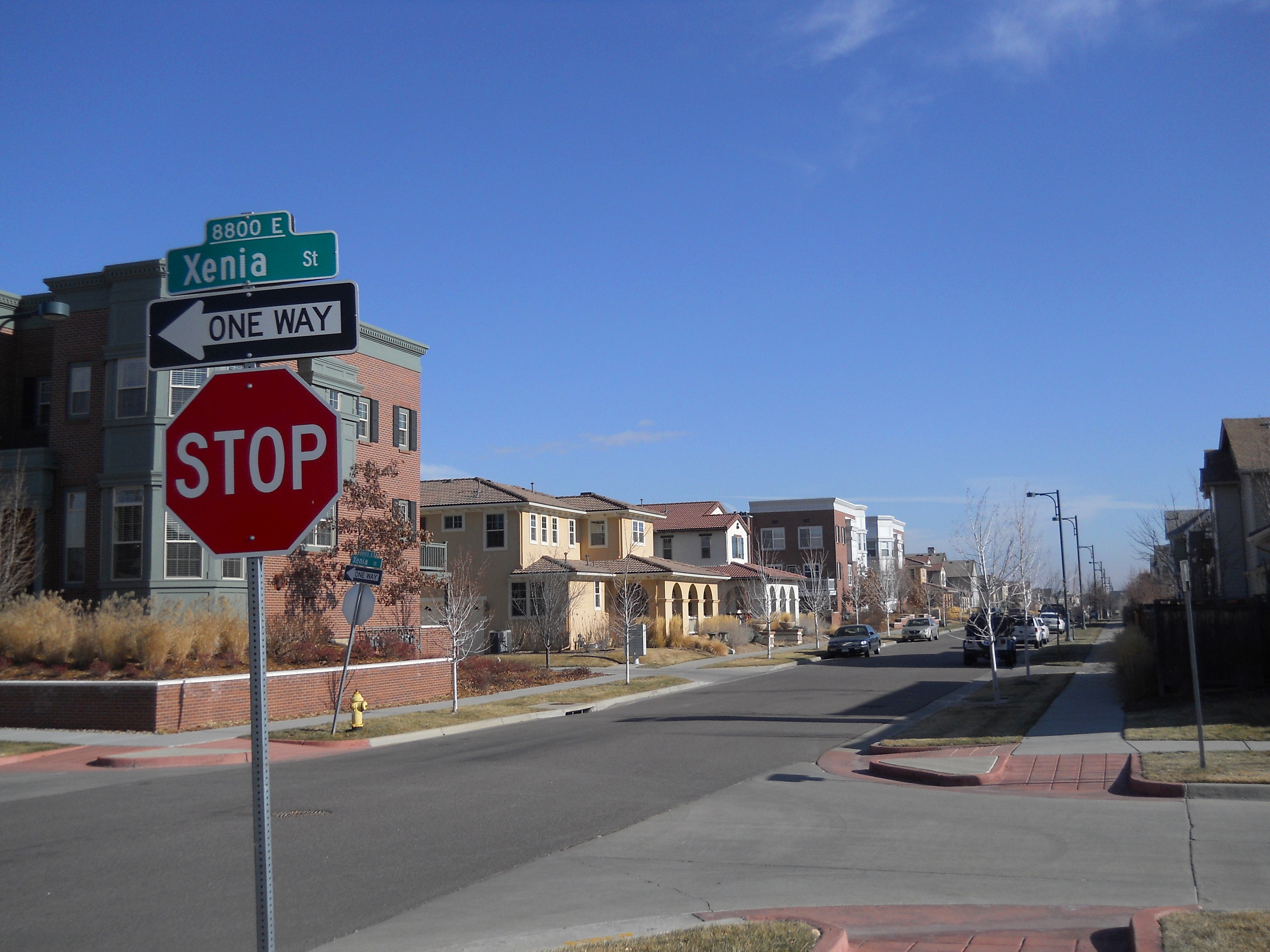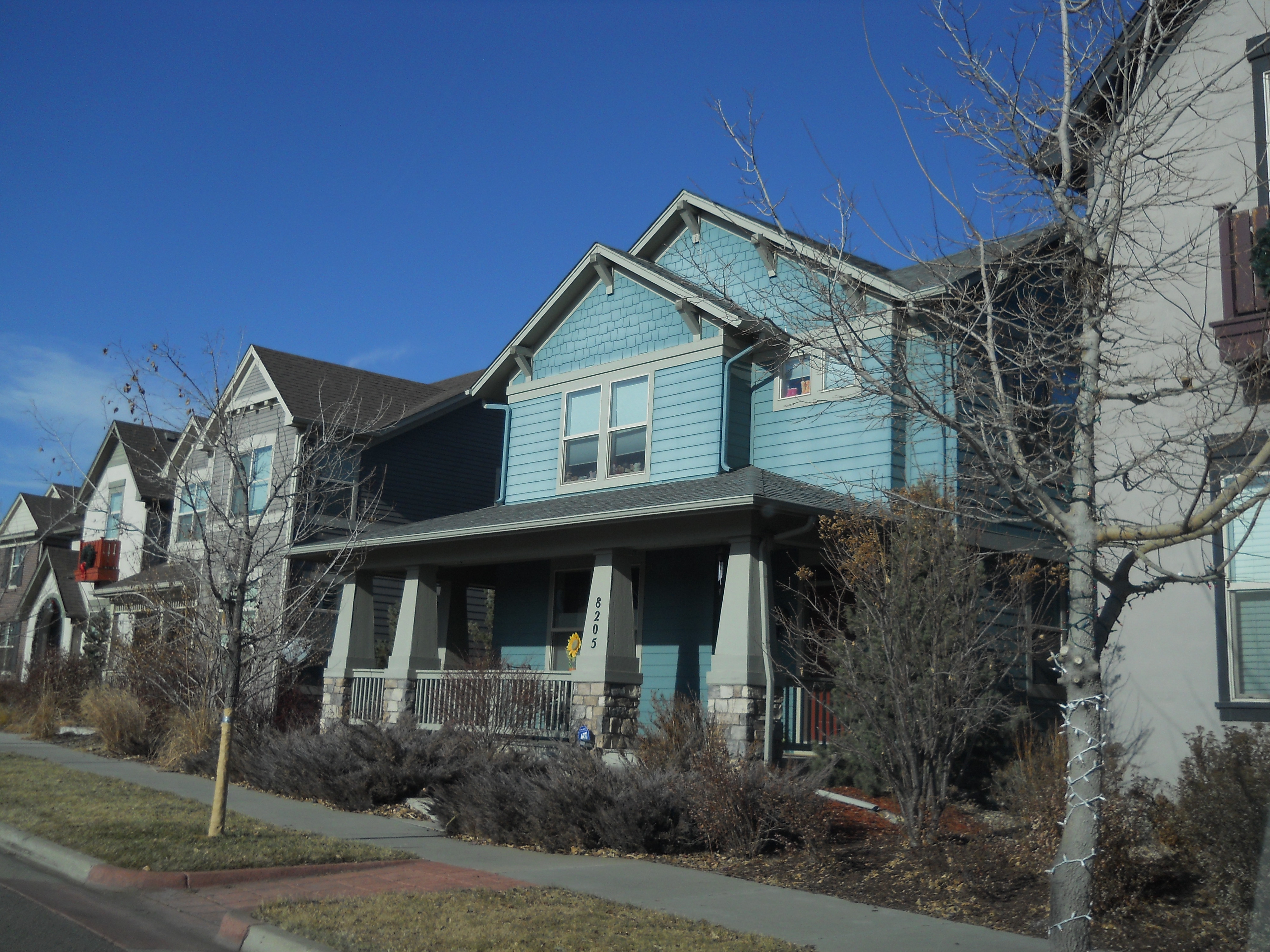 The former airfield was redeveloped by Forest City Enterprises (the company behind Brooklyn's infamous Atlantic Yards) as Stapleton. The development markets itself as being based on New Urbanist principles and does incorporate density and ample park land. However the design appears to adhere to traditional suburban segregation of uses, with long residential streets and remote shopping areas that can only be practically reached by automobile - especially in the cold Denver winters. The architecture is a curious (albeit probably quite pricey) collection of pastiche styles from the late 19th and early 20th century. Being built with contemporary materials and techniques, the houses will likely not have as long a life cycle as their stylistic ancestors. And the almost complete lack of any original ideas, combined with an ironically predictable diversity gives it an air of artifice and sterility that is almost as suffocating as any Levittown.
