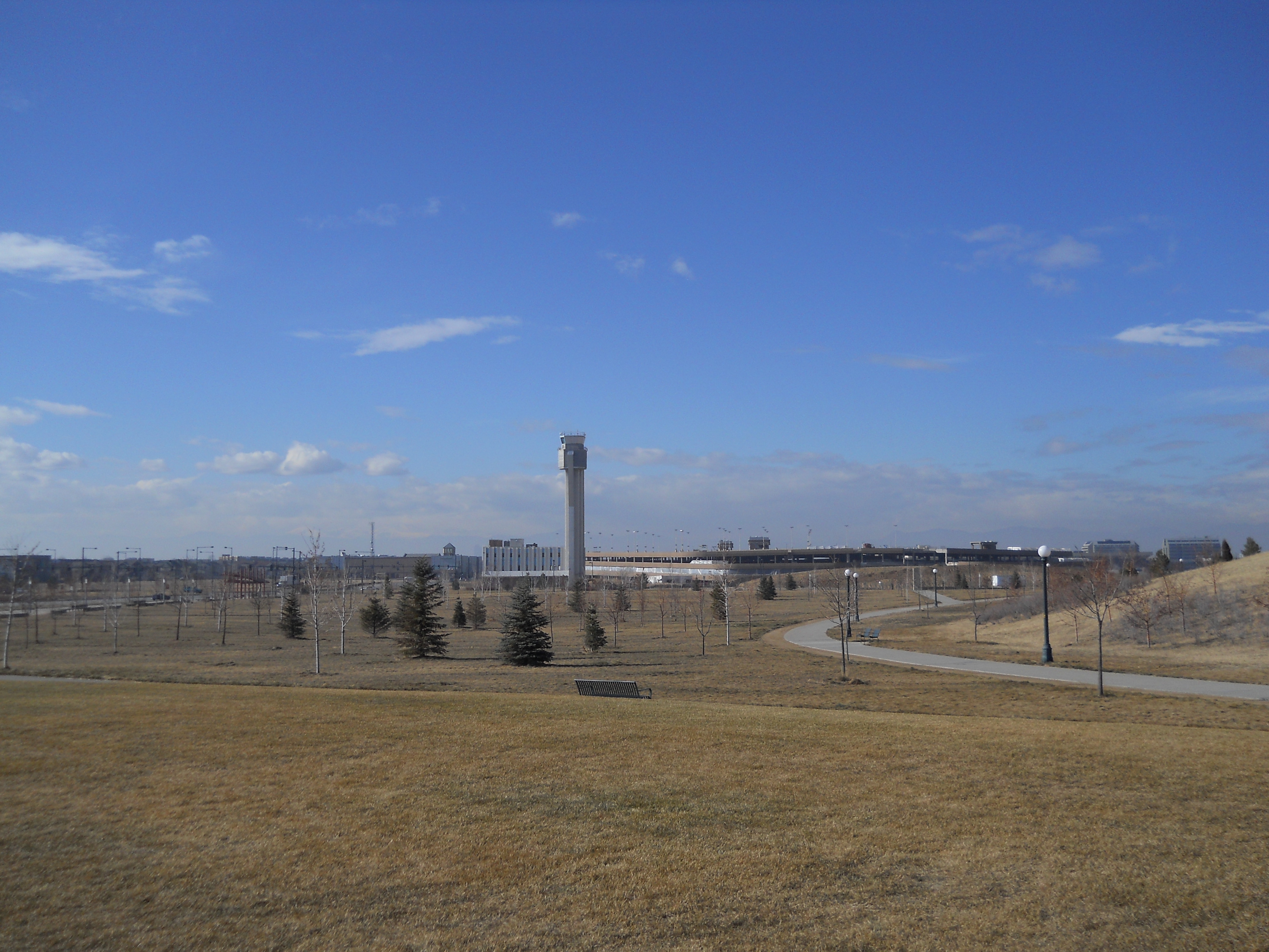 On my way around Denver on I-70, I noticed a control tower where there was no airport. Upon further investigation, I discovered that it was a residual artifact of the former Stapleton International Airport, which was in operation from 1929 to 1995. Physical and legal constraints lead to its replacement by Denver International Airport far to the northeast of the city.