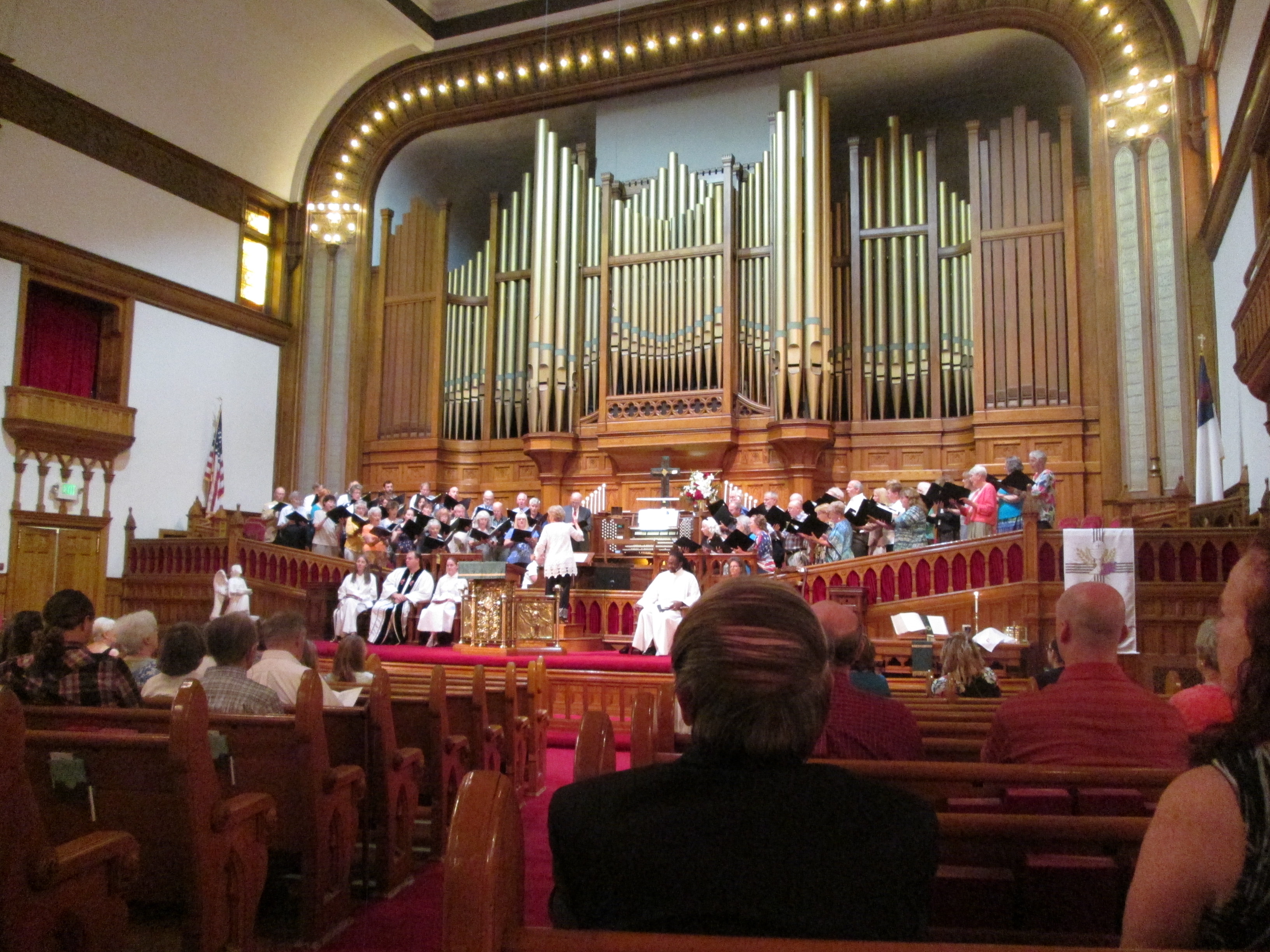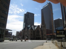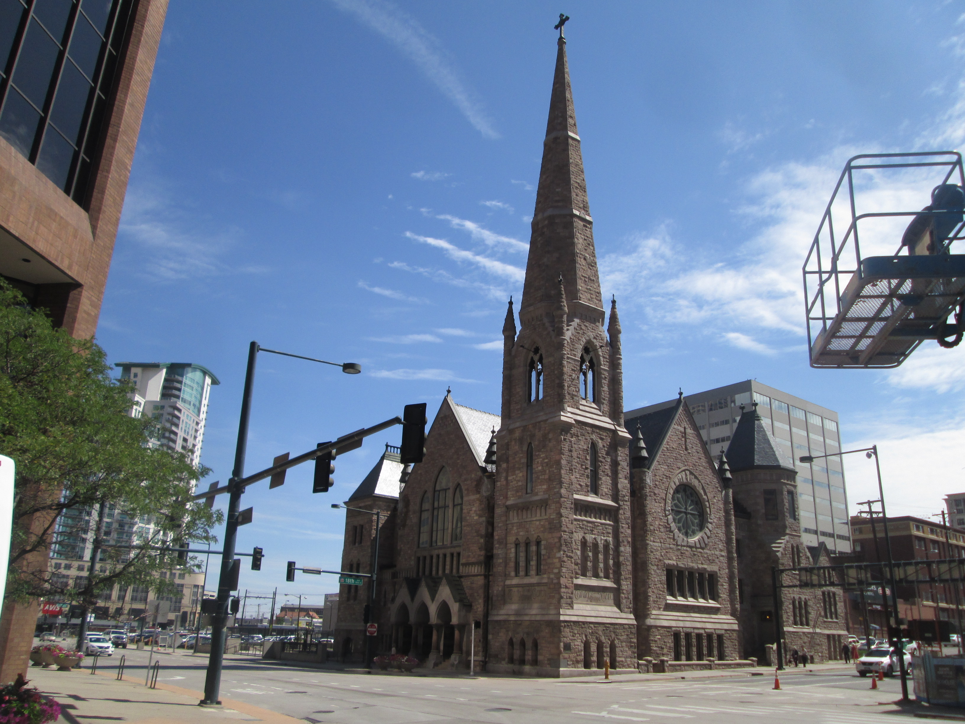 On July 22 the society incorporated as the first M.E. Church. Services were held in various temporary quarters until 1865 when a church was built at 14th and Lawrence Sts. In 1872 the society was called The Lawrence St. M.E. Church, led by Rev. Henry A. Buchtel and renamed Trinity M.E. Church. It moved to 18th and Broadway in 1888, and has been known as Trinity Methodist Church since Methodist union in 1939. This, the first church organization in Denver, has had a notable part in the city's religious and community life.