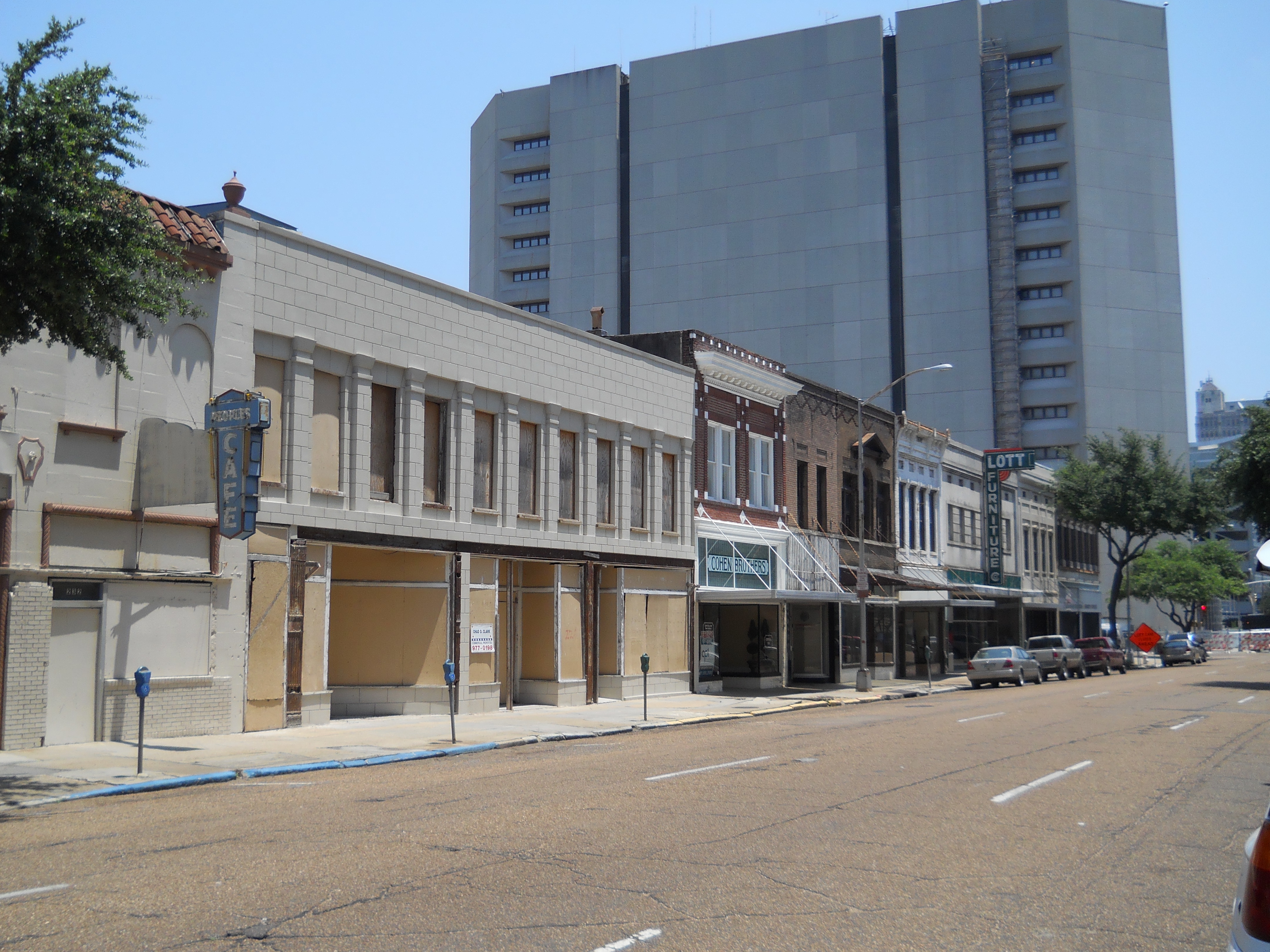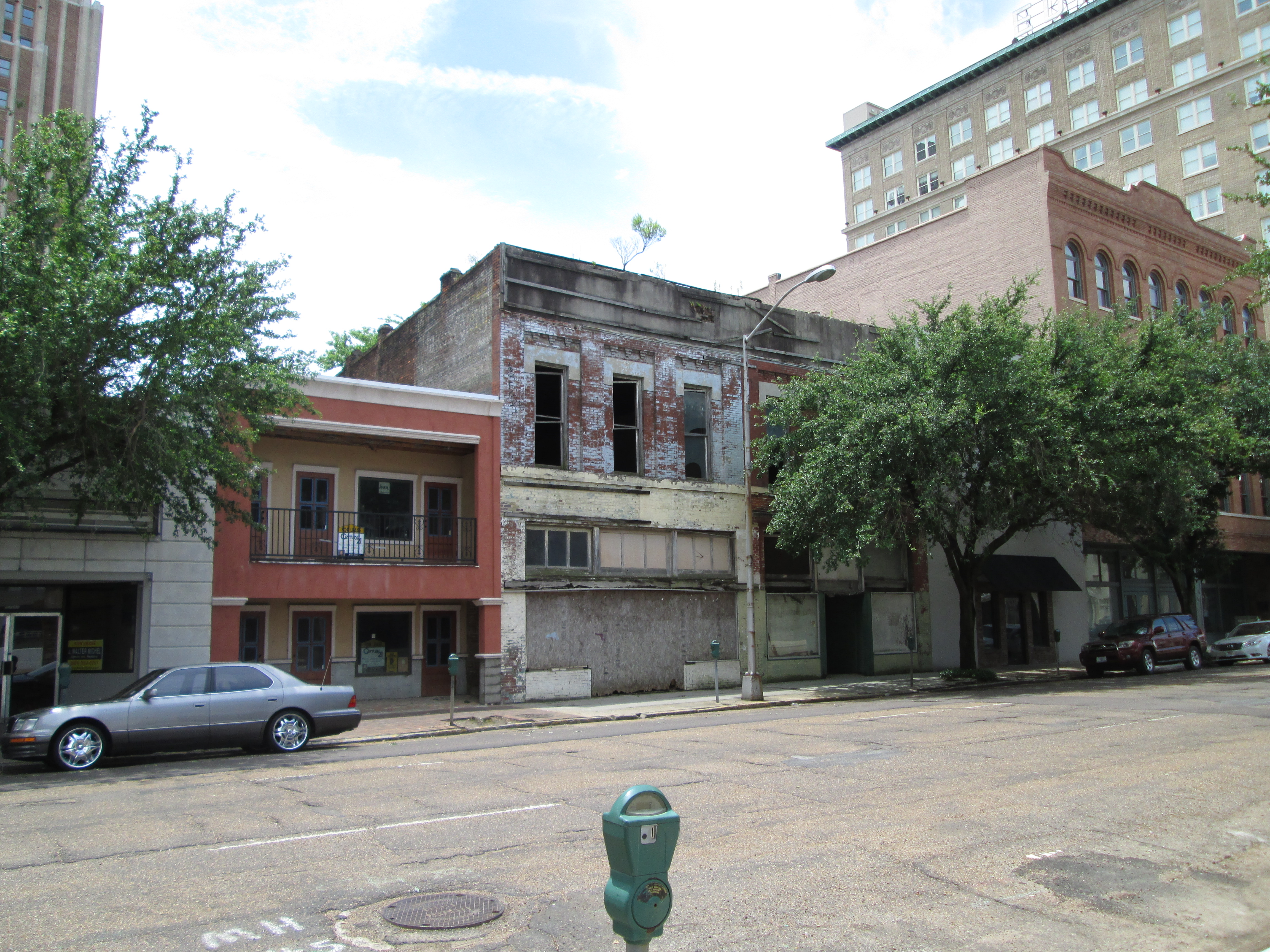 This lovely but faded block of 1920s buildings on the 200 block of West Capitol Street is across from the train station and King Edward Hotel and is slated for redevelopment as the Capitol Arts Lofts, with 31 "moderate-income loft apartments marketed to Jackson's arts and medical communities." An odd set of, literally, bedfellows. (Mississippi Business Journal)