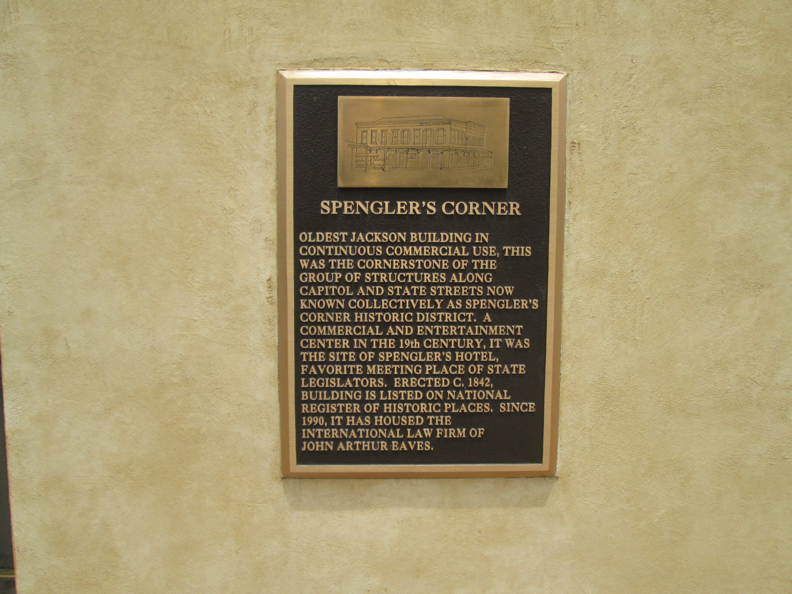 This set of buildings across from the old State Capitol was a commercial and entertainment center in the 19th century. The site is named after Spengler's Hotel which was built around 1842.