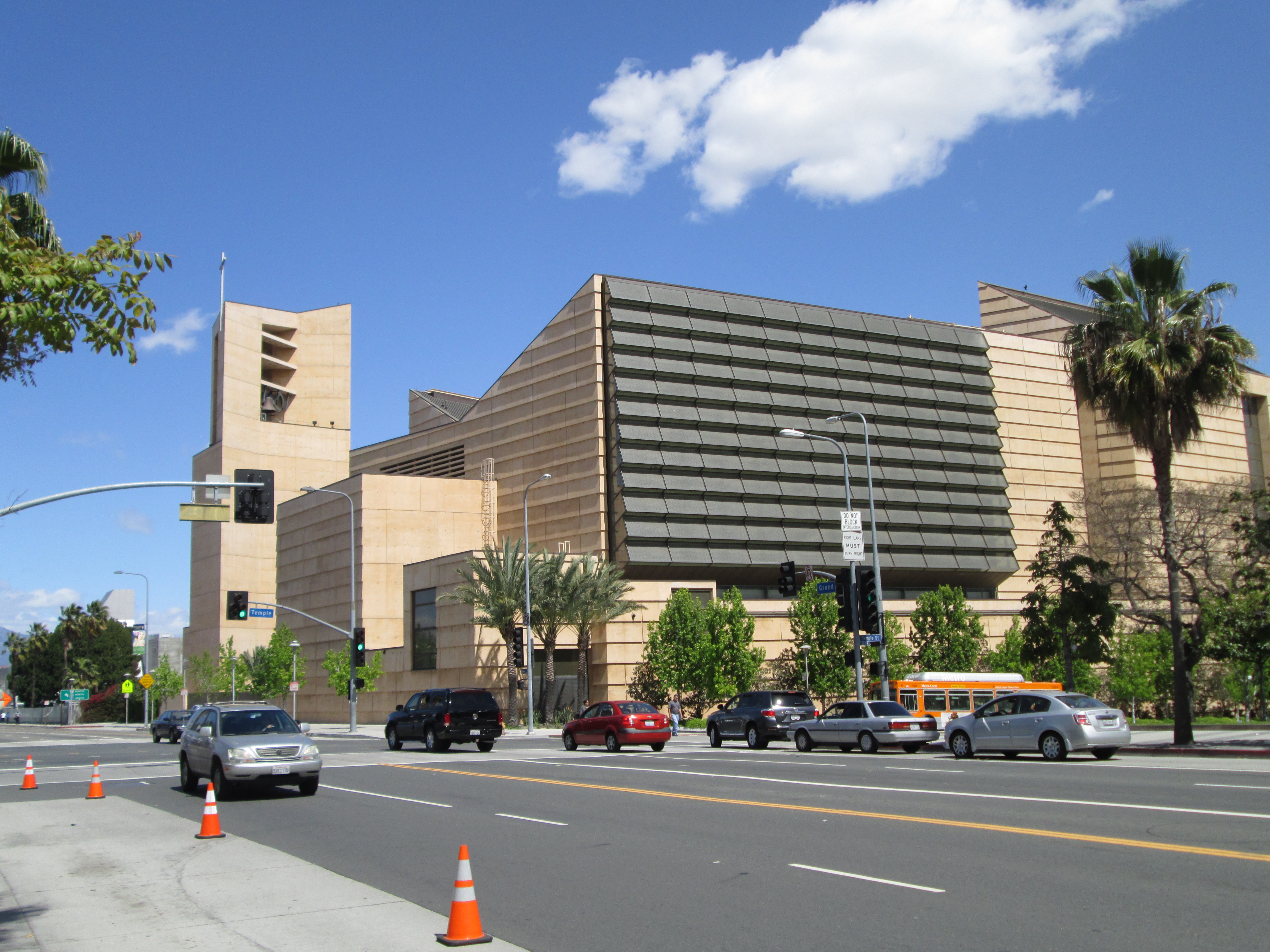 The Cathedral of Our Lady of the Angels is a postmodern structure that opened in 2002 and was designed by Rafael Moneo as the mother church for the Archdiocese of Los Angeles. The site at 555 West Temple Street (catercorner to the city's Music Center) is the result of a land swap with the City of Los Angeles that resolved a preservation fight when the already-inadequate Cathedral of Saint Vibiana was damaged in the 1994 Northridge earthquake. The site includes a 3,000-seat auditorium, a 2.5 acre plaza, office space, a conference center, and housing for clergy.