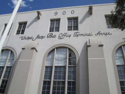This Mission Revival and Spanish Colonial Revival building was designed by Gilbert Stanley Underwood and was built adjacent and concurrently with Union Station just to the east. The proximity was presumably of value in a time when most mail was still transported by rail. It was the central mail processing facility for the city from its opening in 1940 until those operations were transferred to a new, larger building in 1989. The building was added to the National Register of Historic Places in 1985. Retail service was still being offered in this building when I visited in 2013.