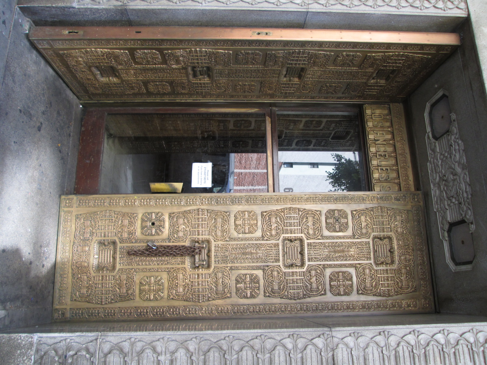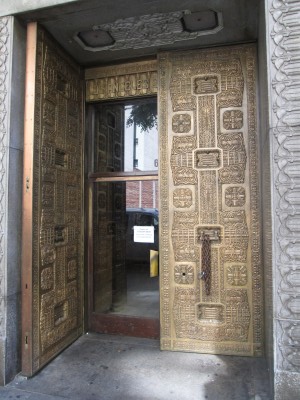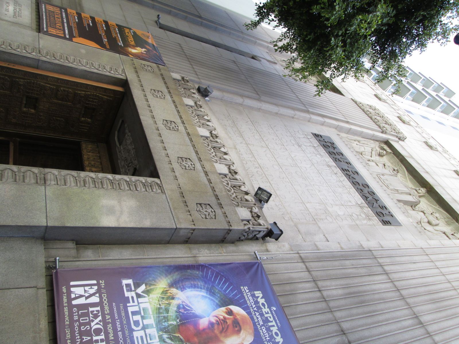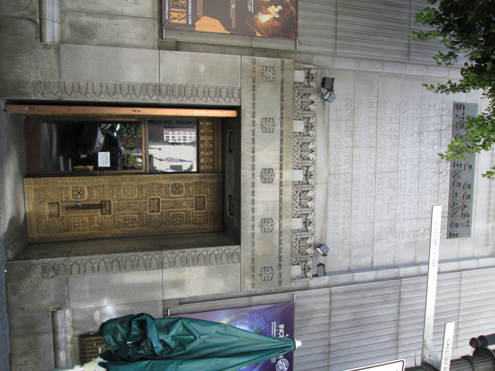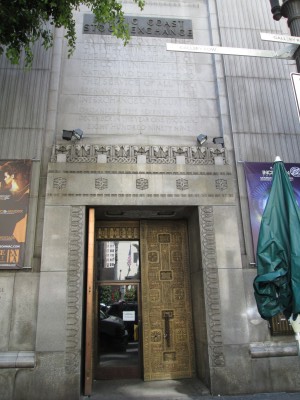 This is the entrance to an eleven-story streamline moderne building designed by Samuel Lunden and opened in 1931. The facility had a large trading floor, offices, an auditorium, reading rooms, recreational areas, a printing room and a vault. The then-named Pacific Stock Exchange vacated the building in 1986 and when I visited in 2013 it was a dance club.