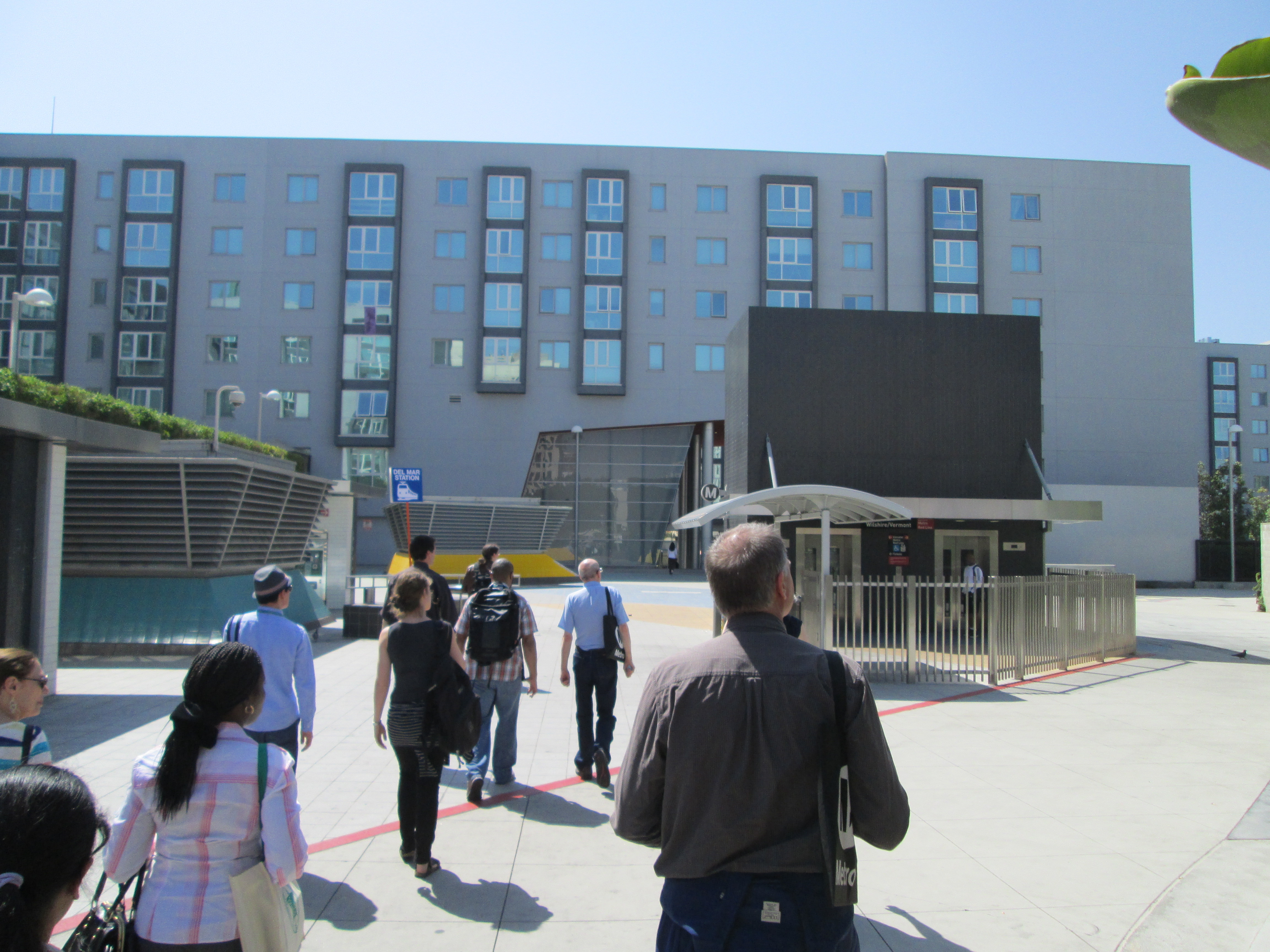 The Wilshire Vermont station is another "true" transit-oriented development on 3.24 acres of Metro-owned property. The apartment complex include 449 apartments and 35,000 square-feet of ground floor retail surrounding the subway portal. A new middle school (Young Oak Kim Academy) was built on an adjacent 2.4 acre site and a bus layover facility is planned for the site of the existing UFCW Local 770 building.