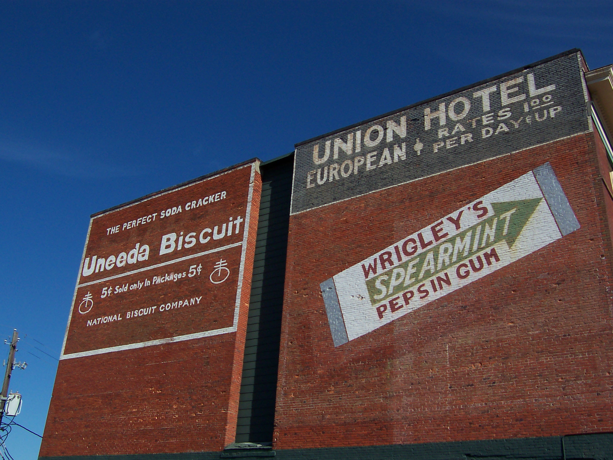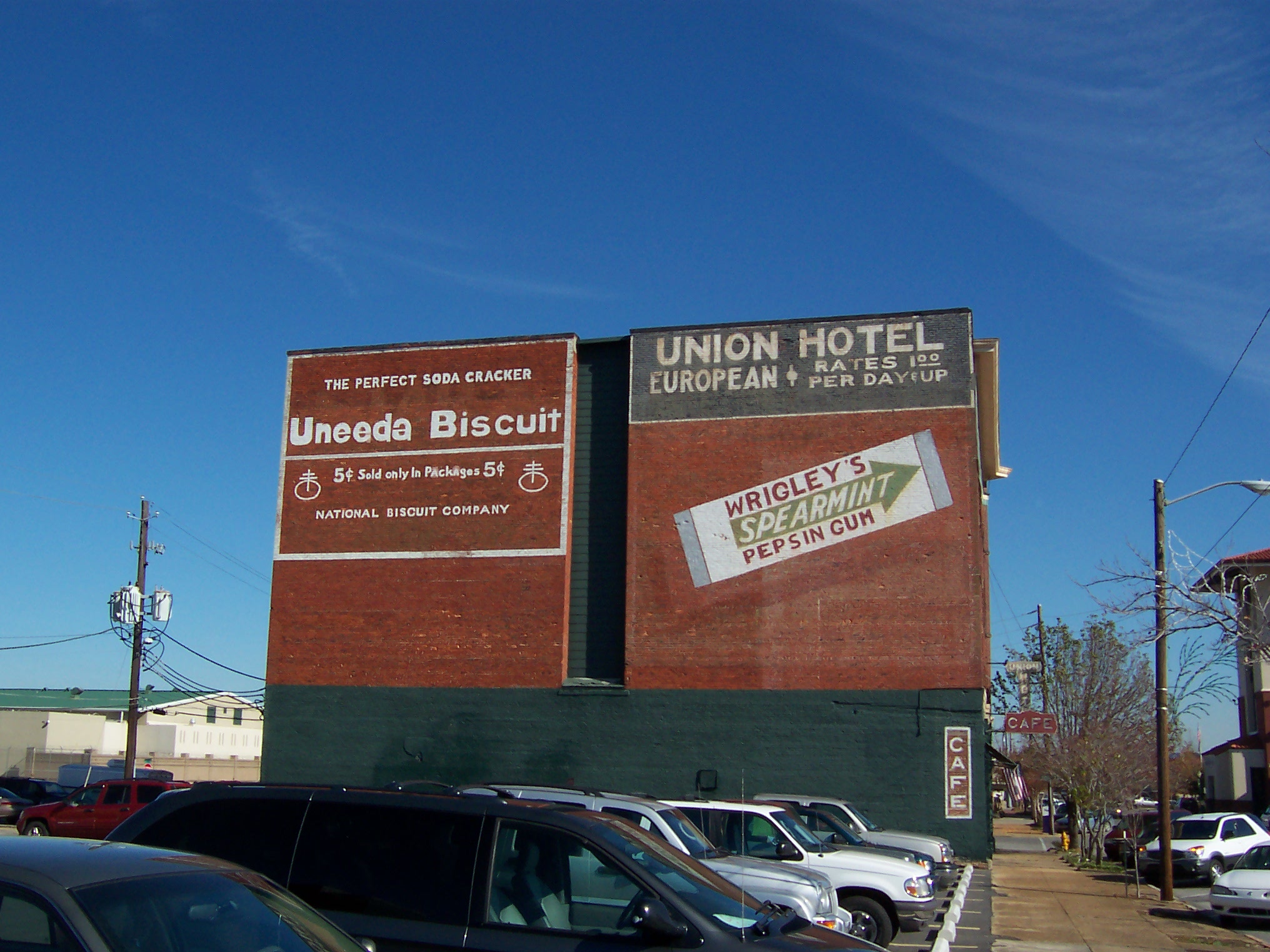 Some of the old "ghost" wall advertisements had obviously been restored, giving evidence that there are historic preservation forces at work - conservatism in the best sense of the word. I also discovered Jean's Restaurant, just down the street from the train station, which featured fine Southern cuisine and was justifiably packed.