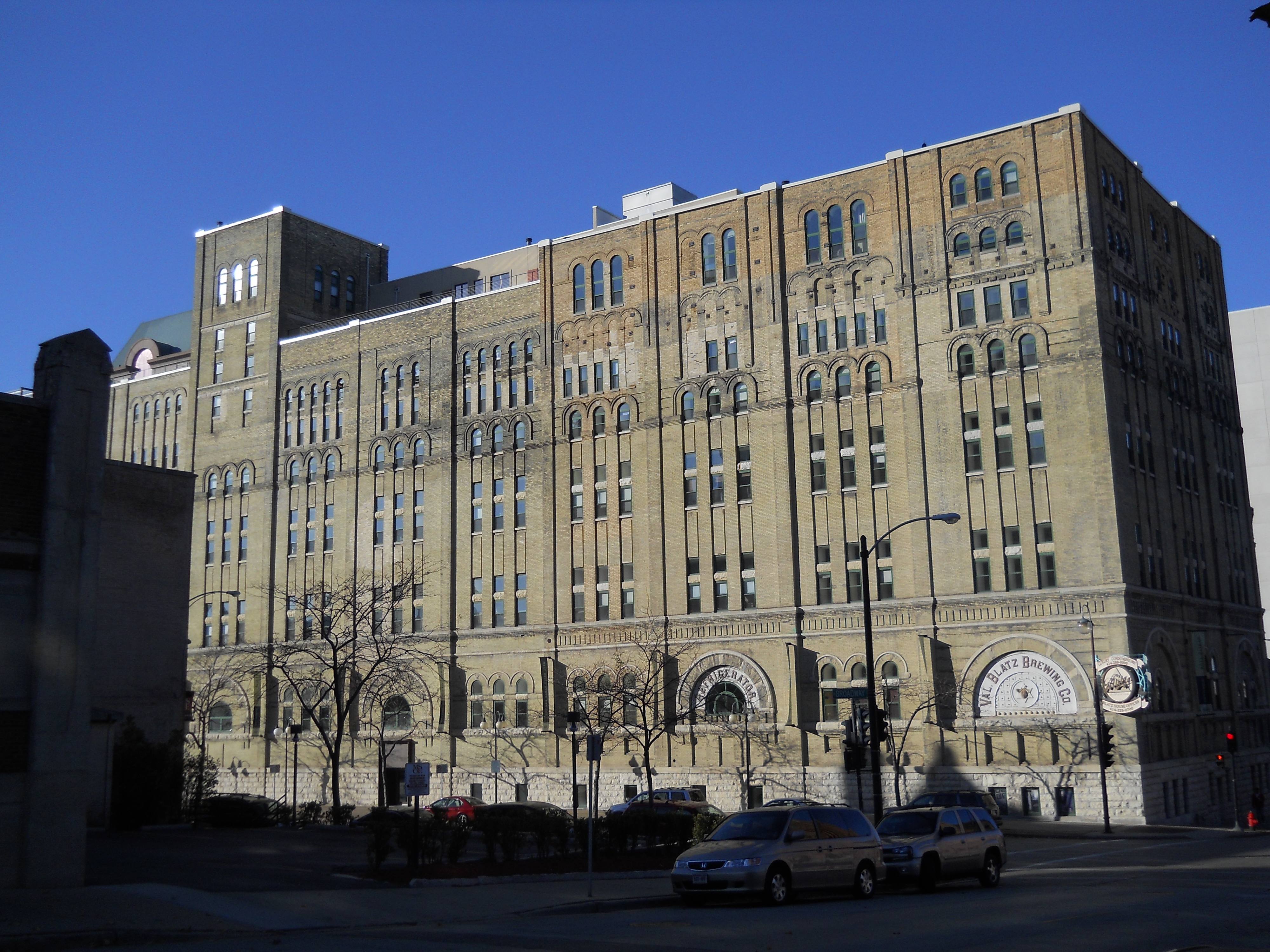 Valentin Blatz opened a brewery in Milwaukee in 1850 and the company was incorporated in 1889. This massive landmarked facility opened in 1891. Blatz closed in 1959 and its assets were acquired by Pabst the following year. G. Heilemann acquired Pabst in 1969, Stroh acquired G. Heilemann in 1996 and Stroh sold its labels to Pabst before dissolving in 2000.