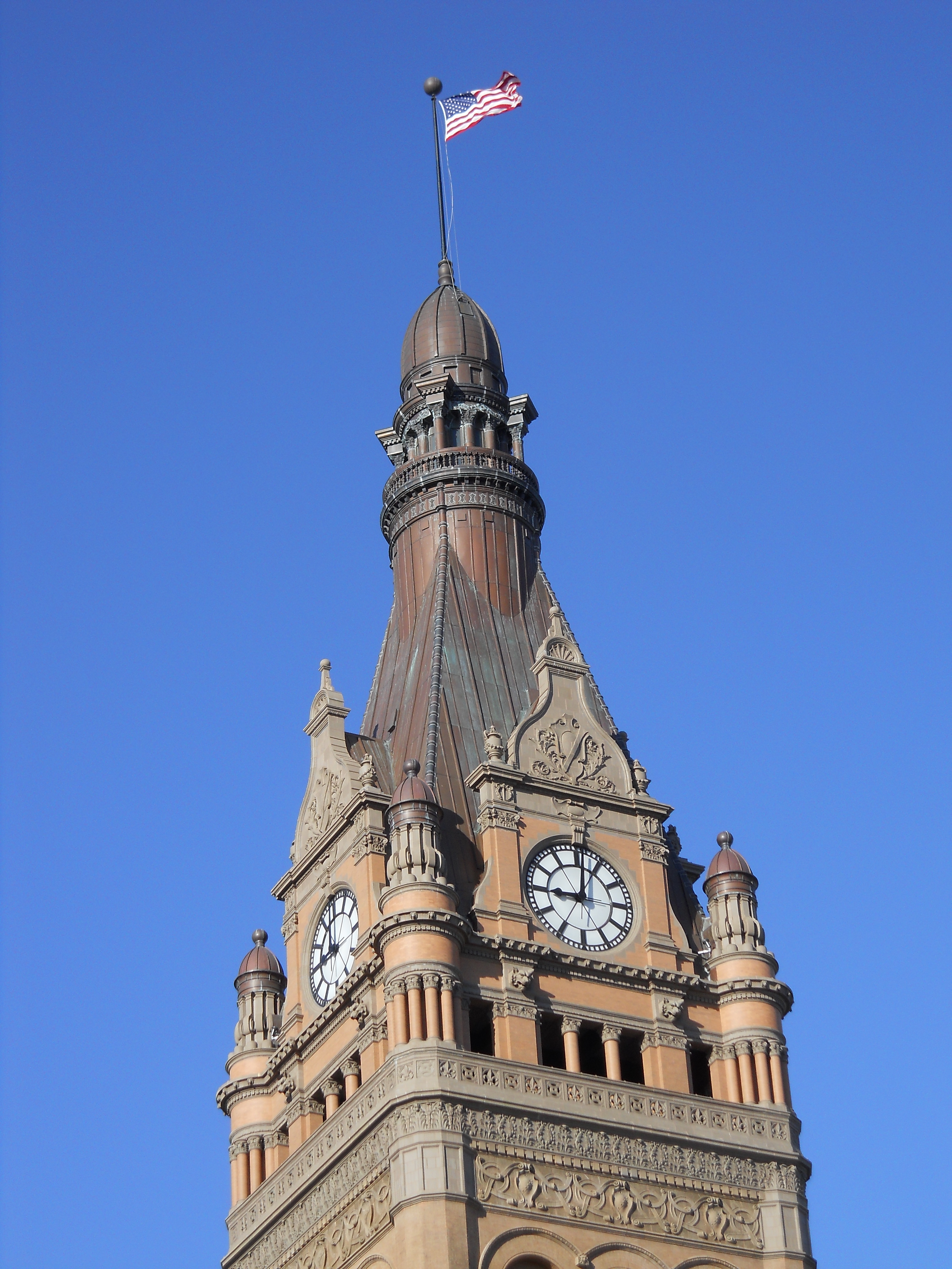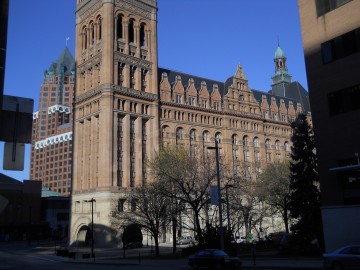 The Milwaukee City Hall was designed by the same architect as the Golda Meir School. The German Renaissance Revival style building features a 353-foot bell tower.