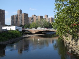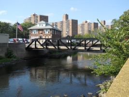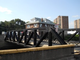 When I visited Paterson in the Summer of 2010, it was a fairly rugged place, with large pockets of poverty amidst the abandoned and repurposed infrastructure. Headed up the hill from the city to Hinchliffe Stadium, I crossed the river downstream of the Great Falls over the West Broadway Bridge (1897).