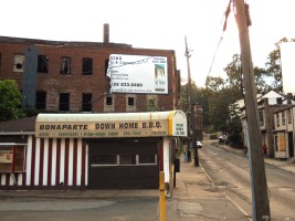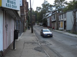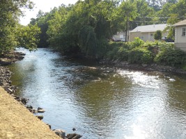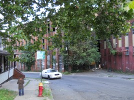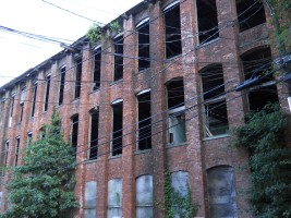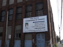 Walking uphill on Ryle Avenue, I passed the abandoned facilities of the Addy Mills and Columbia Textile Mills, both EPA brownfields sites. I also passed signs advertising The Vistas, a condo development on the bluffs above the river downstream of the falls that appears to have been derailed either by the Great Recession or the crappy neighborhood.