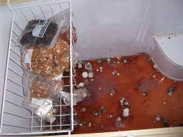 The freezer and refrigerator proved to be one of the more unpleasant jobs in a season that was filled with unpleasant jobs. The refrigerator hadn't been cleaned in perhaps 15 years and would have been a nightmare even in normal circumstances. Having sat for a week and a half with no power, the contents were quite aromatic. I got some heavy garbage bags from the garage and a pair of rubber gloves from the sink and started pitching. Nine fetid bags and two hours later, the job was done.