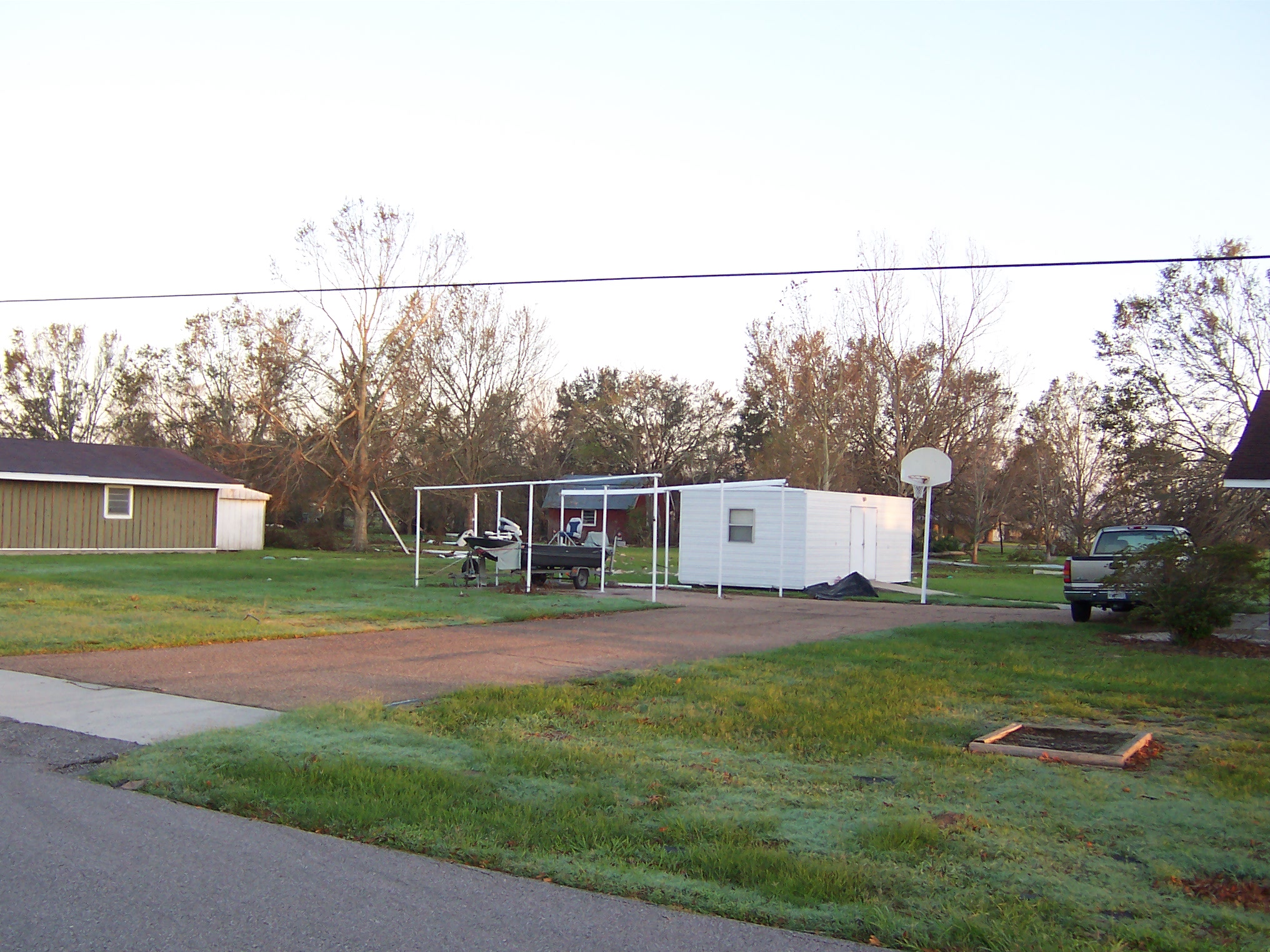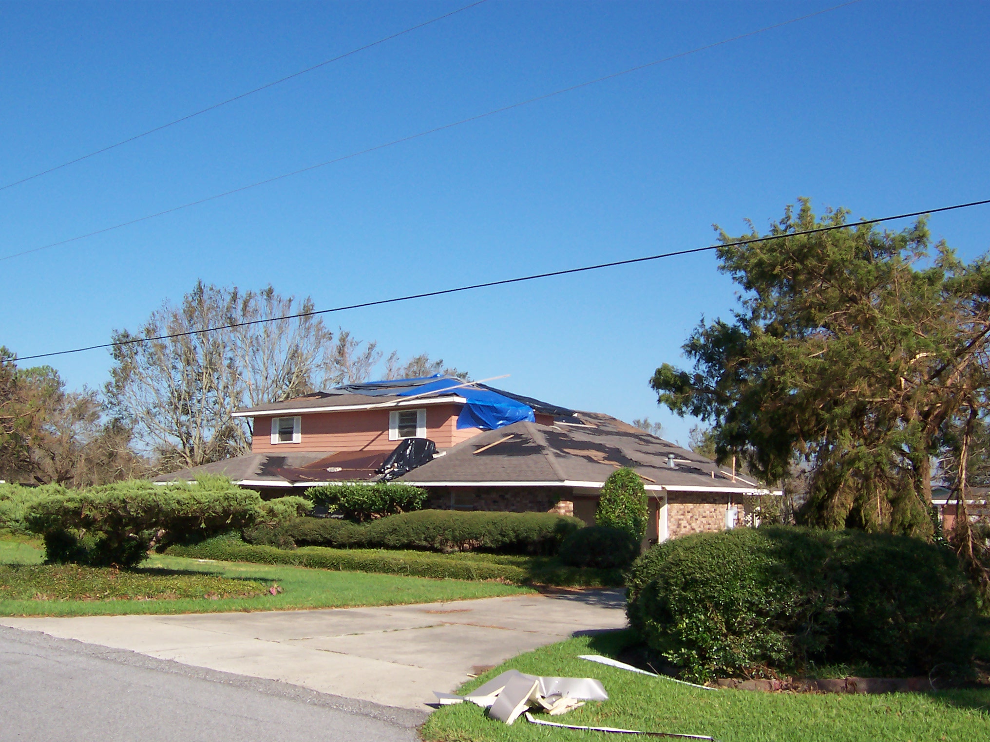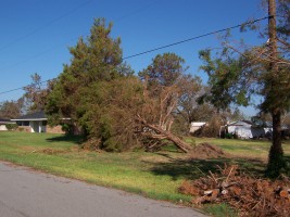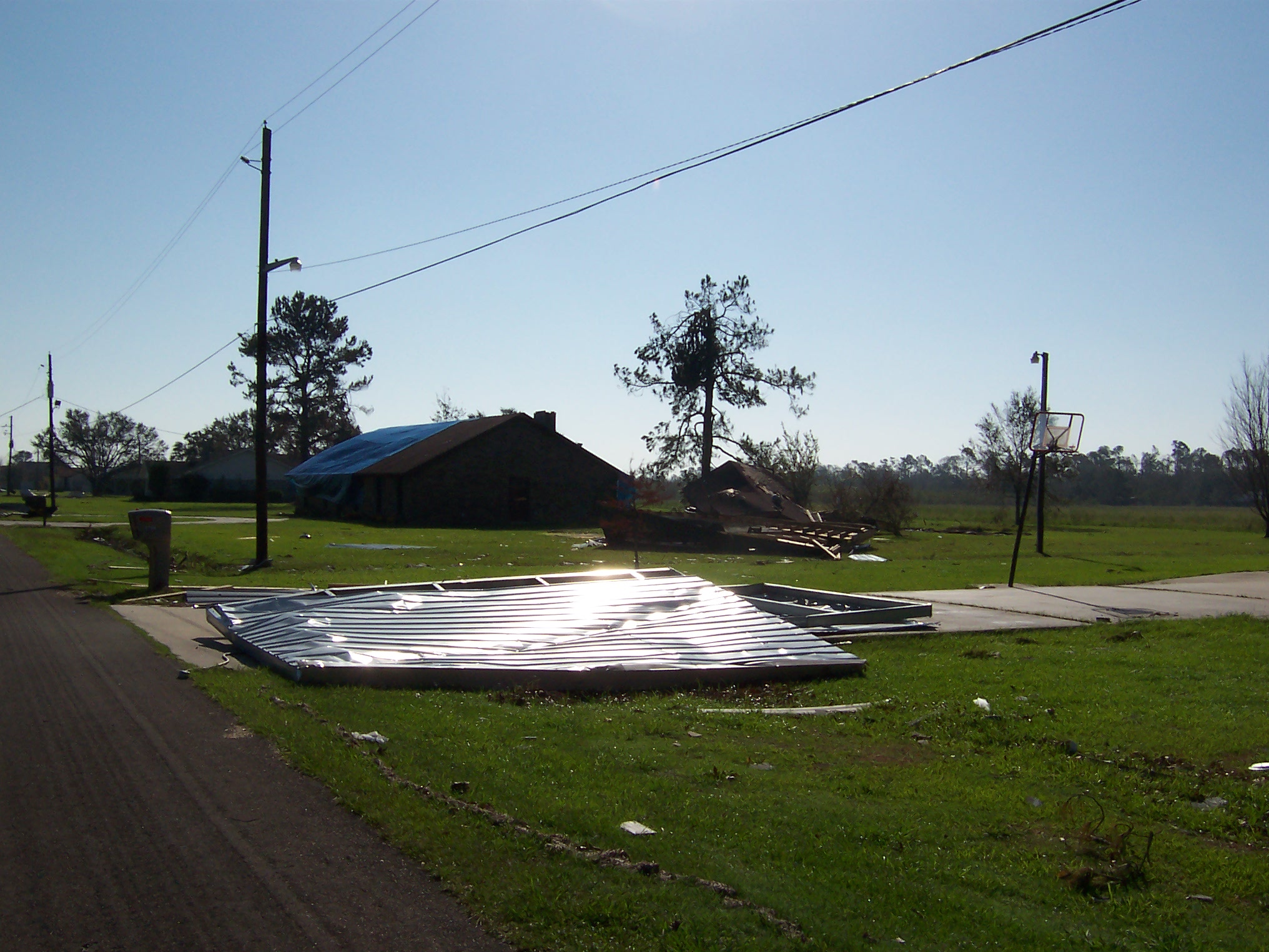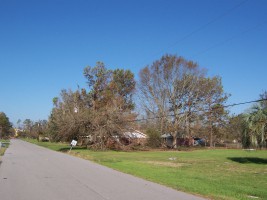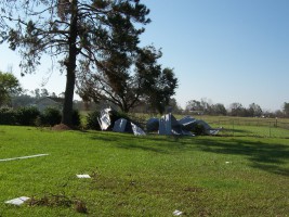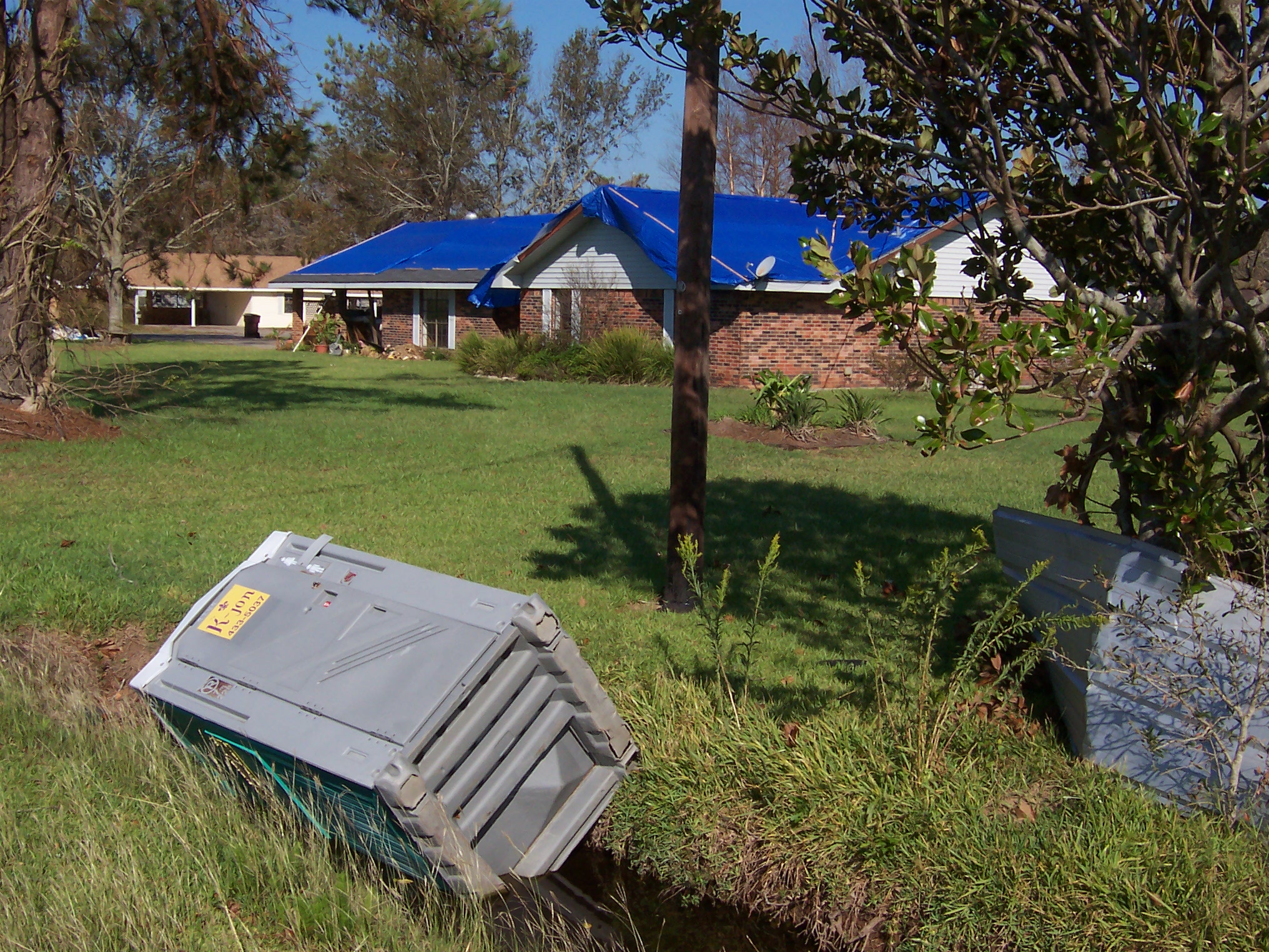 The next morning, I took some additional photos of the interior and some shots of the damage to the neighborhood. Charlie pulled his trailer up and we joined our bags of refrigerator detritus for a trip to a household garbage pickup point. On the way back, we stopped at a mobile claims unit set up by State Farm to check on the status of his adjuster.