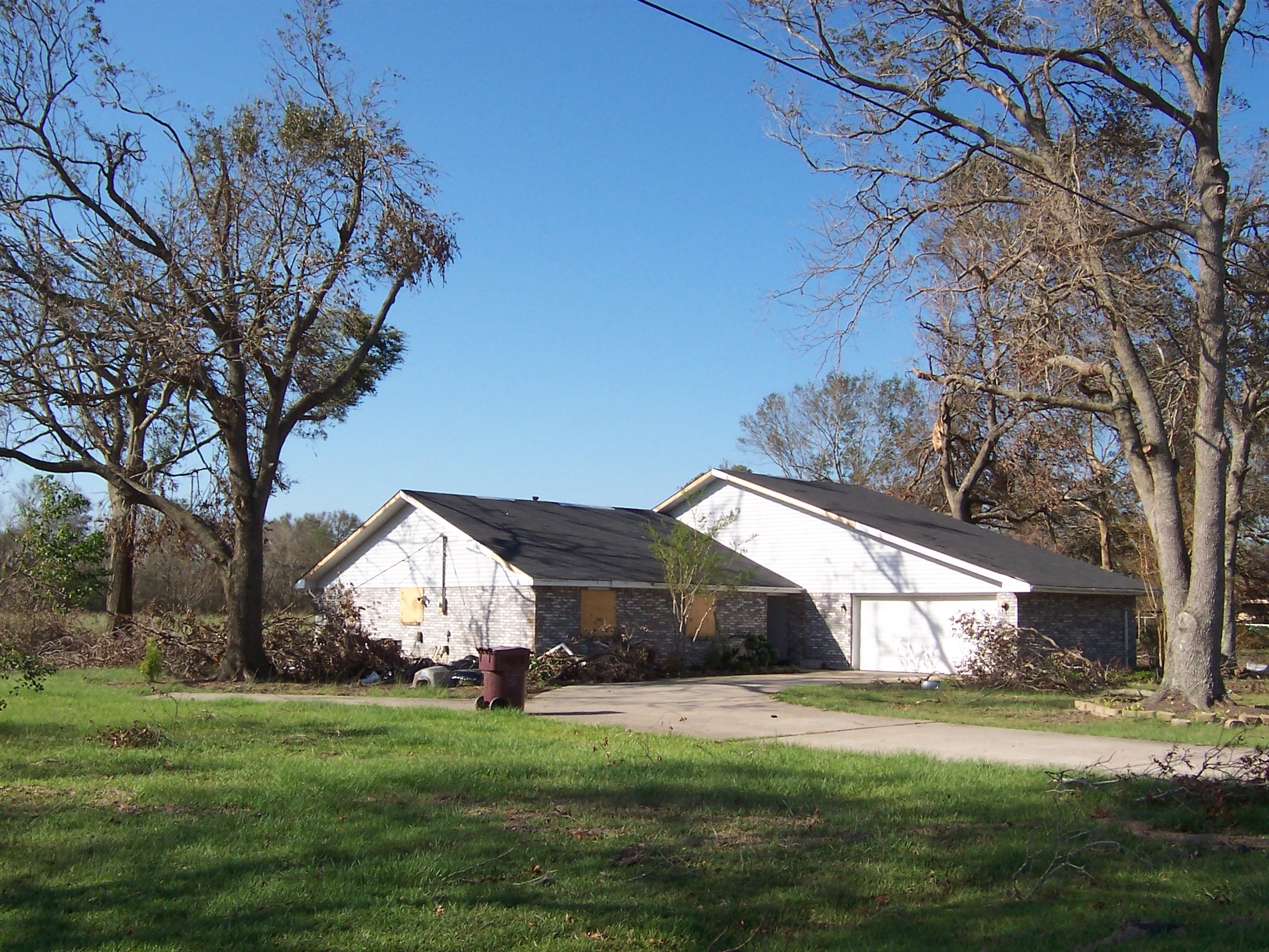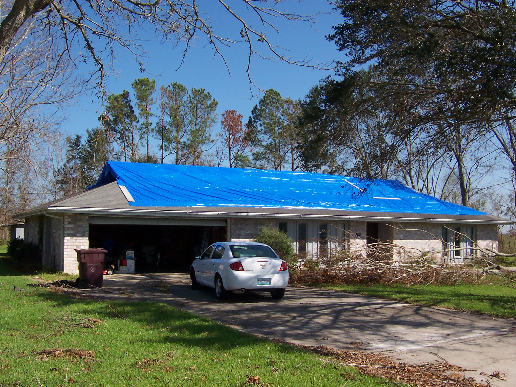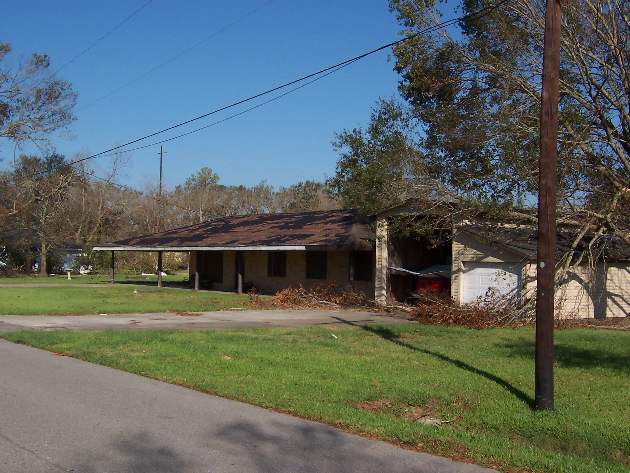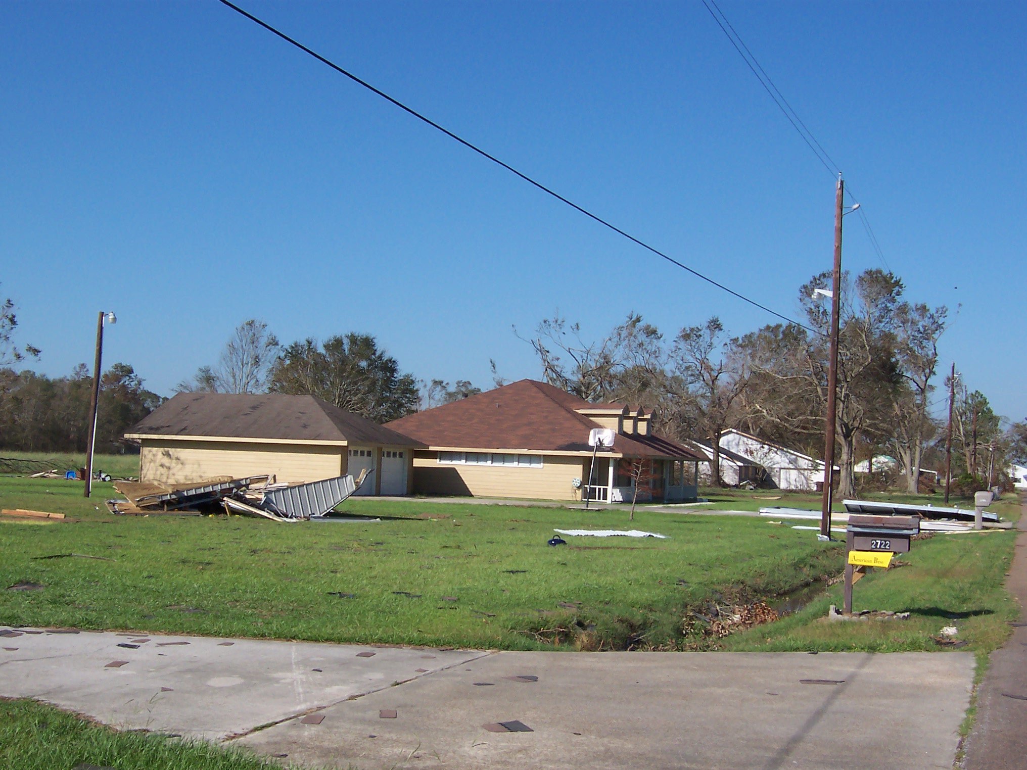 The next morning, I took some additional photos of the interior and some shots of the damage to the neighborhood. Charlie pulled his trailer up and we joined our bags of refrigerator detritus for a trip to a household garbage pickup point. On the way back, we stopped at a mobile claims unit set up by State Farm to check on the status of his adjuster.