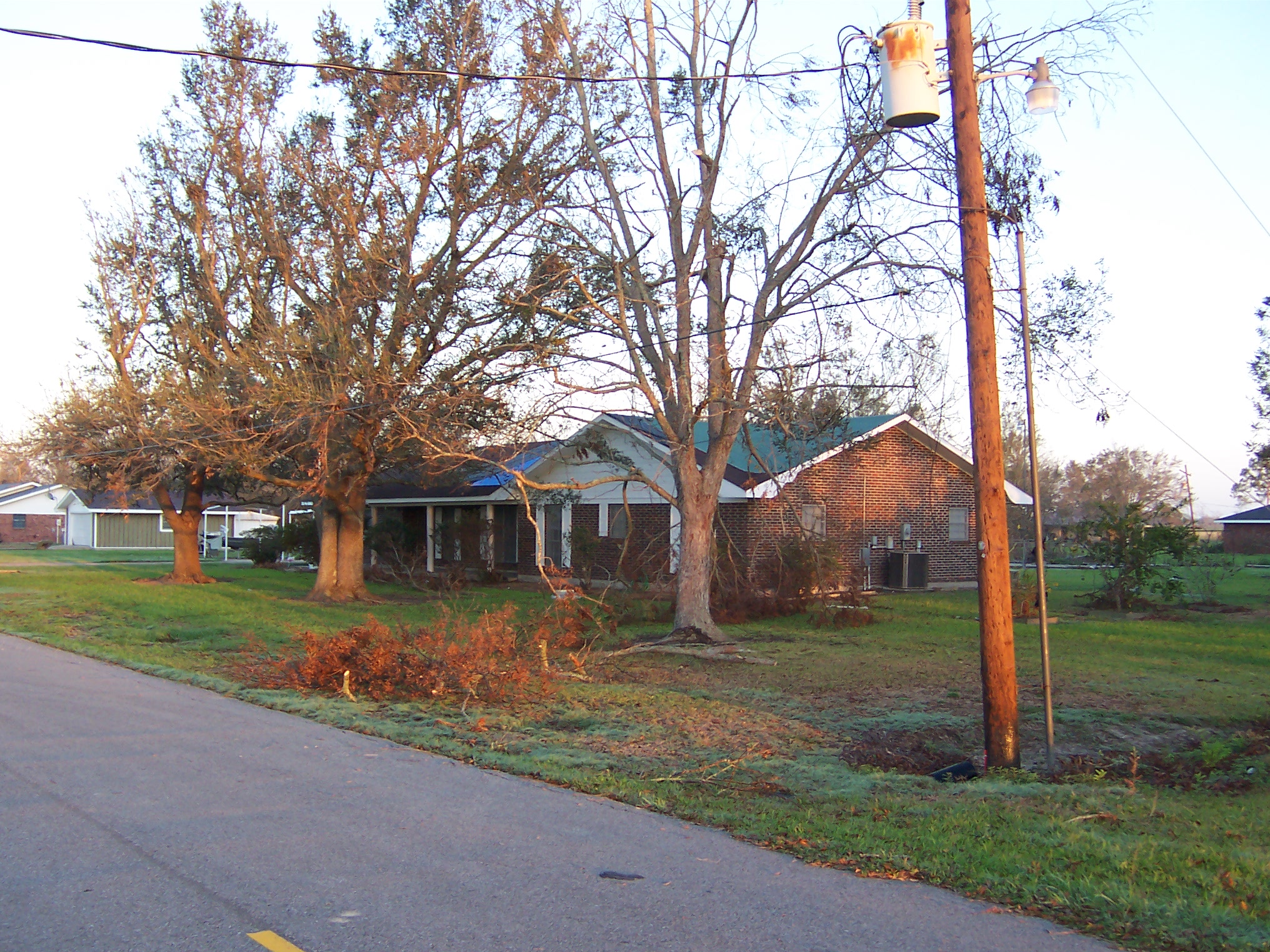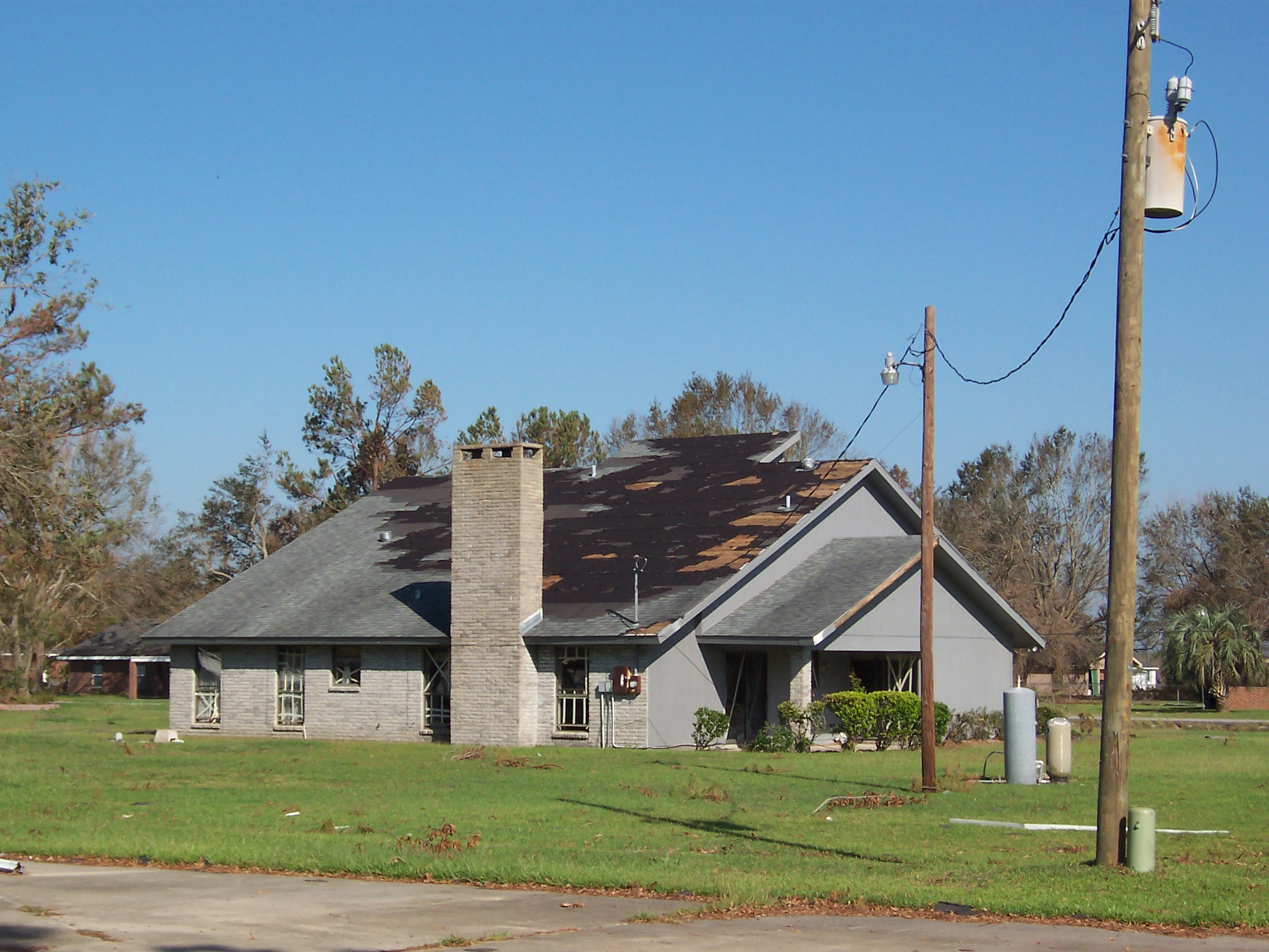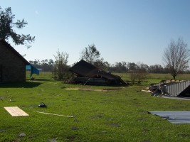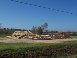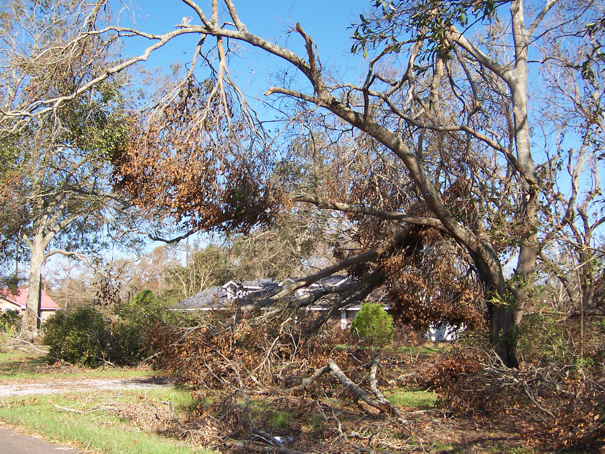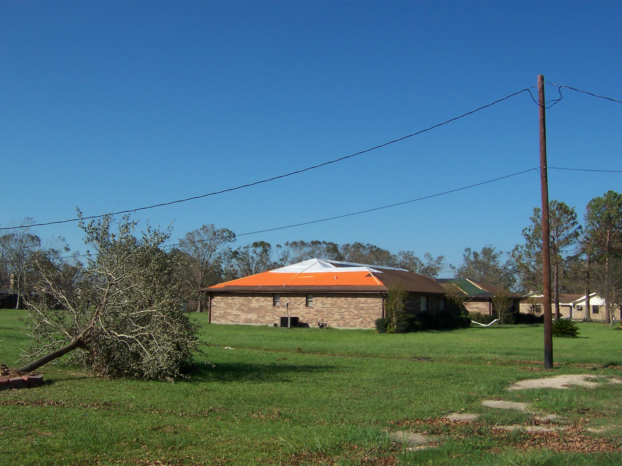 The next morning, I took some additional photos of the interior and some shots of the damage to the neighborhood. Charlie pulled his trailer up and we joined our bags of refrigerator detritus for a trip to a household garbage pickup point. On the way back, we stopped at a mobile claims unit set up by State Farm to check on the status of his adjuster.