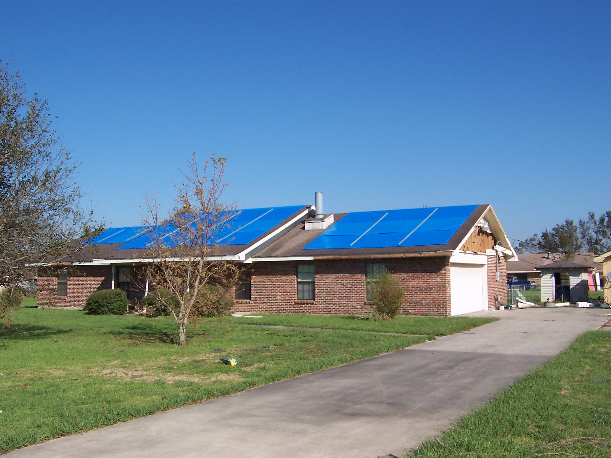 Satellite view of our blue-roofed neighborhood
