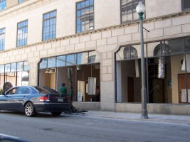 A downtown office...intact except for missing windows.