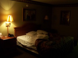 Taking Greyhound is a unique cross-cultural experience for those of us who try to remain cloistered in middle-class existence. All the folks that can't afford cheap air fairs take buses, as well as people from all those remote rural towns that aren't serviced by air travel. The bus station was a converted 1927 Cass Bank building that turned out to be nowhere near a Metro stop. The initial impact of the relatively well-preserved rococo bank interior, inhabited by the huddled masses (including a family of Amish) and lit by garish modern (sodium) lamps (i.e. street lamps) was somewhat overwhelming, considering that I was at diminished mental capacity from 30 hours of travel. I bought a ticket and tried to get some sleep (on seats designed to keep people from sleeping on them). Finally, around midnight, I decided to give into biology, take a cab to a hotel room, and... stop moving.
