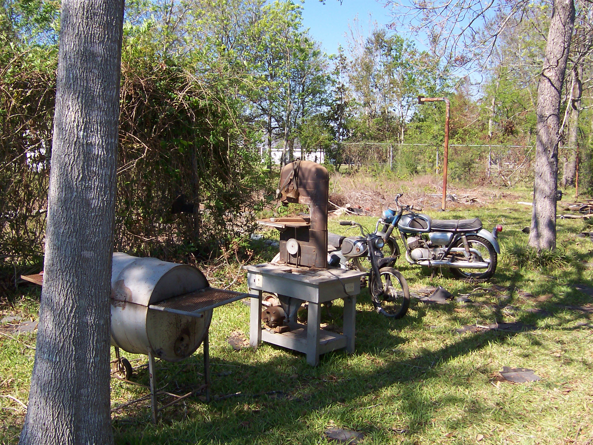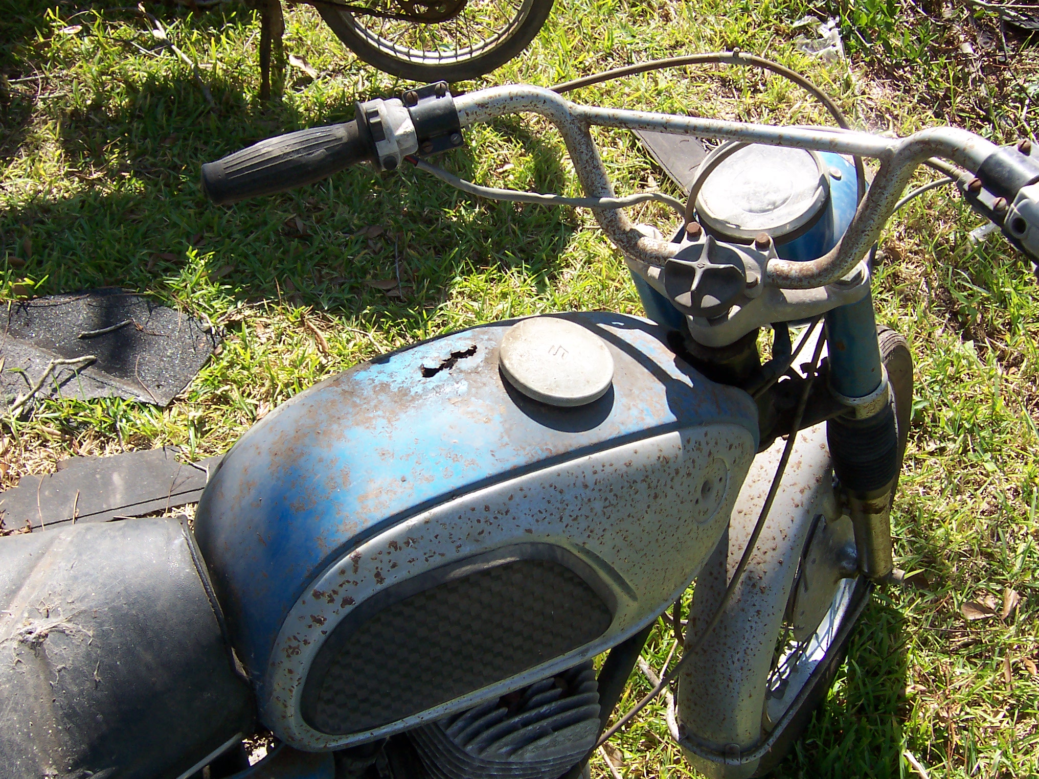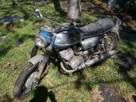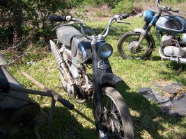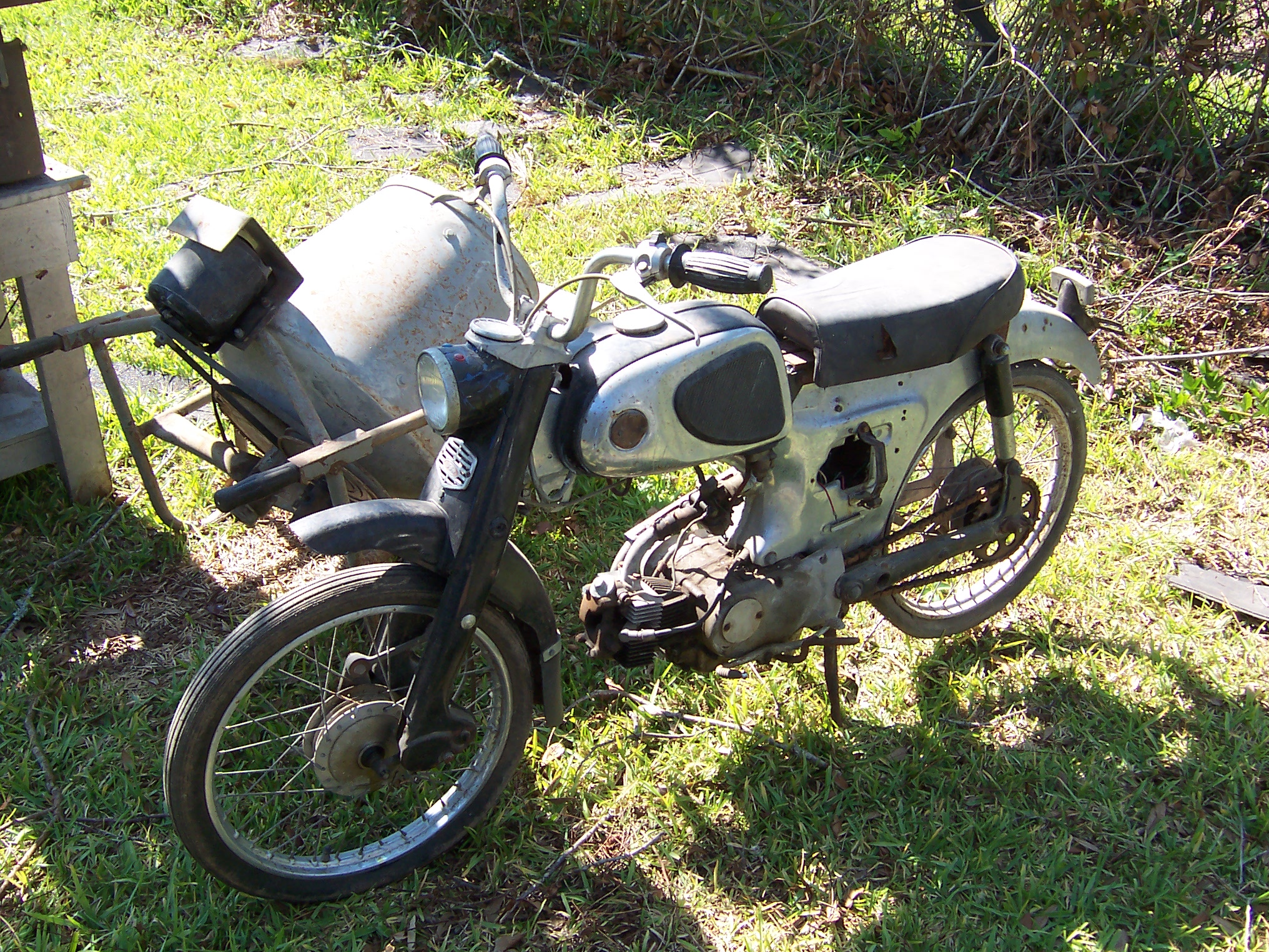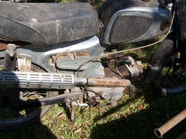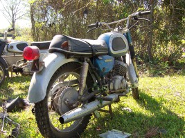 The shed cleaning allowed me to revisit a couple of old motorcycles that my father had bought in the mid '70s. He had some kind of arrangement with one of his engineering students that bartered for an old Honda C110 series 50cc street bike for me and a Suzuki 250 two-cylinder, two-cycle bike for him. The Honda 50 was fun for a 12-year old, but was no match for the 70cc dirt bikes that my neighbors owned. While they were happily risking their necks driving across the rice field, I was stuck on the streets deathly in fear of being accosted by the State Troopers that would sporadically patrol our neighborhood. Dad's Suzuki 250 never worked quite right despite considerable work by him and the guy who gave it to him. Over the years I had hoped to give these bikes away to someone who had an interest in classic machines. But it turned out that the gas tank on the Suzuki had corroded and given the wretched state of the Honda, they now became not treasured machines but toxic garbage that I had no idea how to get rid of.