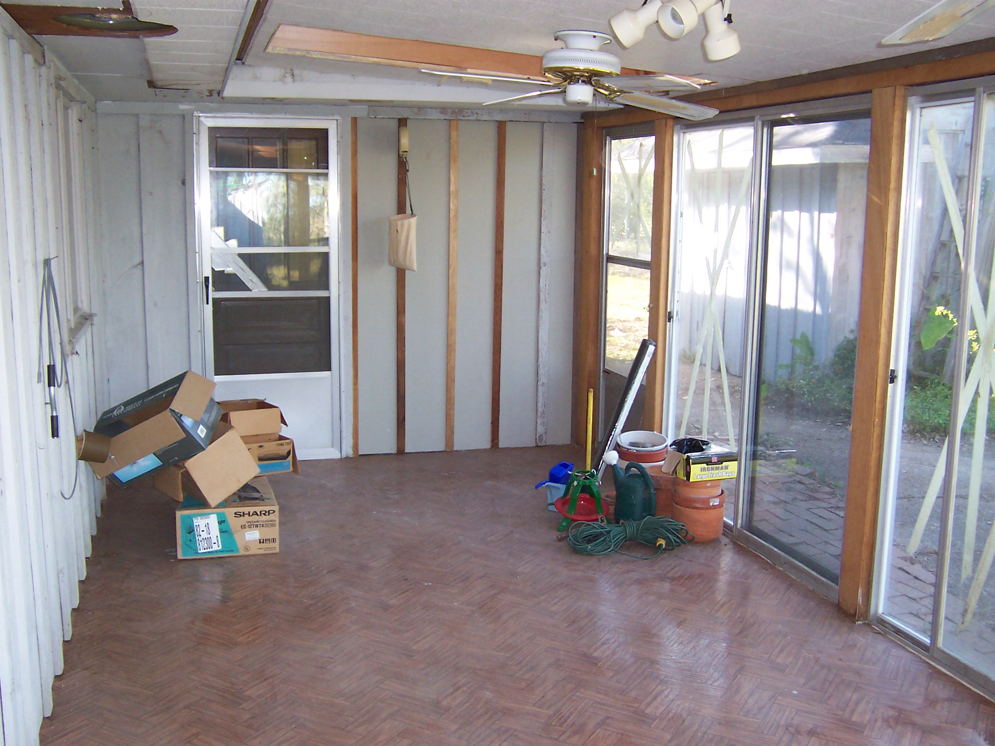 When the world was young, the clouds of mosquitoes drifting over from the drainage ditches and rice fields made it very difficult to enjoy the comparatively mild evenings outdoors in the Spring and Fall. Our neighbors built a recreational screened in patio behind their home and used it to great effect. My mother always wanted one and my father started a somewhat more elaborate one with multiple sliding glass doors and ceiling fans. However, he only partially completed it before his stroke and, as with pretty much every other space in their house, it became primarily a storage area for plants and gardening tools.