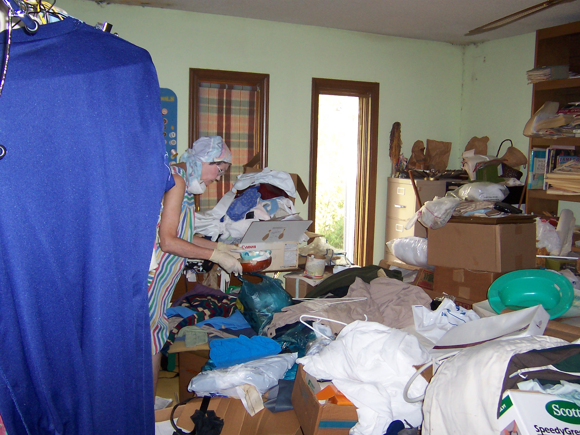 Mom was finally able to get started on cleaning out her sewing room. This was a bedroom adjacent to their master bedroom and had served as my bedroom from 1972 until I moved to the back bedroom in 1977. With the persistent refrain, "Oh, just put it in the sewing room" the piles of old clothes and magazines grew over the years until it became largely impassable by the time of my father's stroke. With my mother's time and attention consumed by my father's care, the sewing room became ossified in the '80s, until Rita came calling and ruined much of the contents of that room.