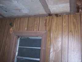 After I had cleaned out the shed in the previous week, I noticed that large clumps of wasps would gather in the crevices between the ceiling and wall after dark. Having bitter memories of wasp stings from my youth (including getting stung on the lip the day before the start of 5th grade), I purchased a Raid fumigator and released it just after dusk.