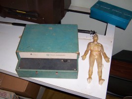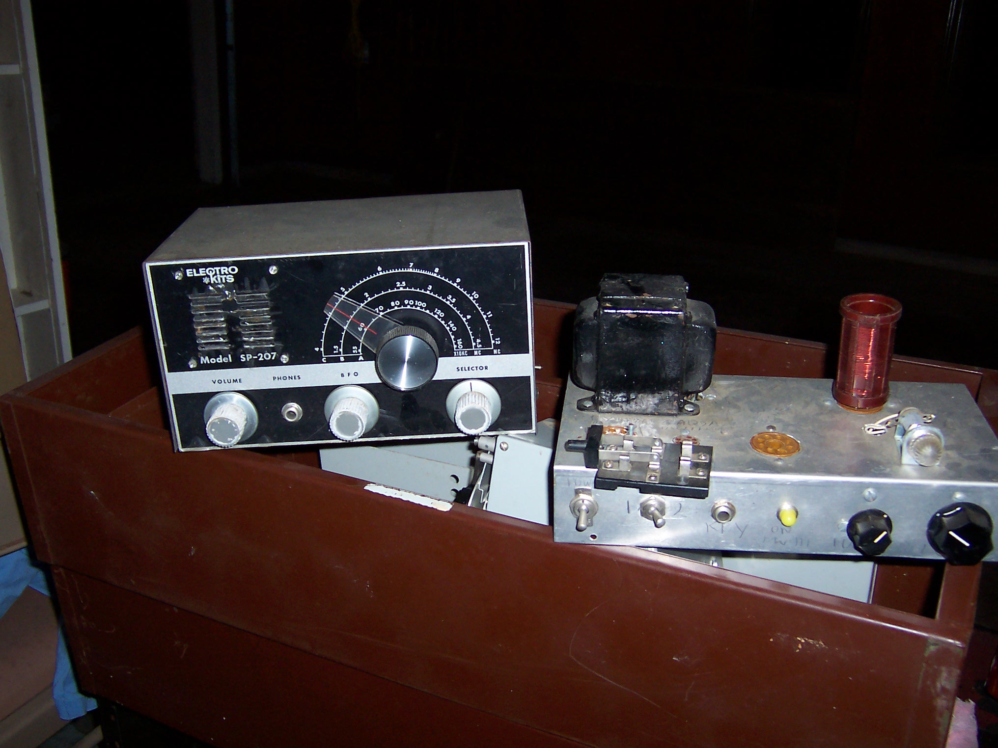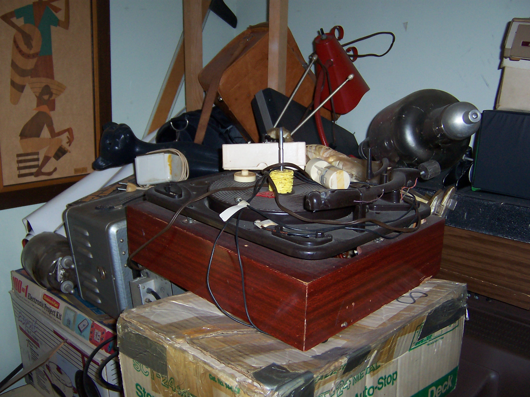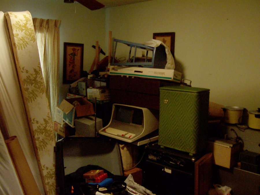 After the folks left for the evening, I began tackling a pile of old equipment in my former bedroom. At some point in the '80s, my father acquired an old computer table from the early '70s. Remember that computers at that time were massive beasts that took up entire rooms. This table could have held an elephant and weighed almost as much as one. In high school I had collected vacuum tube electronic equipment and made some feeble attempts at becoming an amateur radio operator (KA5AKX) - complicated by my use of dilapidated vacuum equipment at a time when it had just been outmoded by transistor equipment. Sometime in the '90s, I began piling that old, useless equipment on top of dad's computer table with the intention of hauling it all off someday. That day was November 7, 2005.