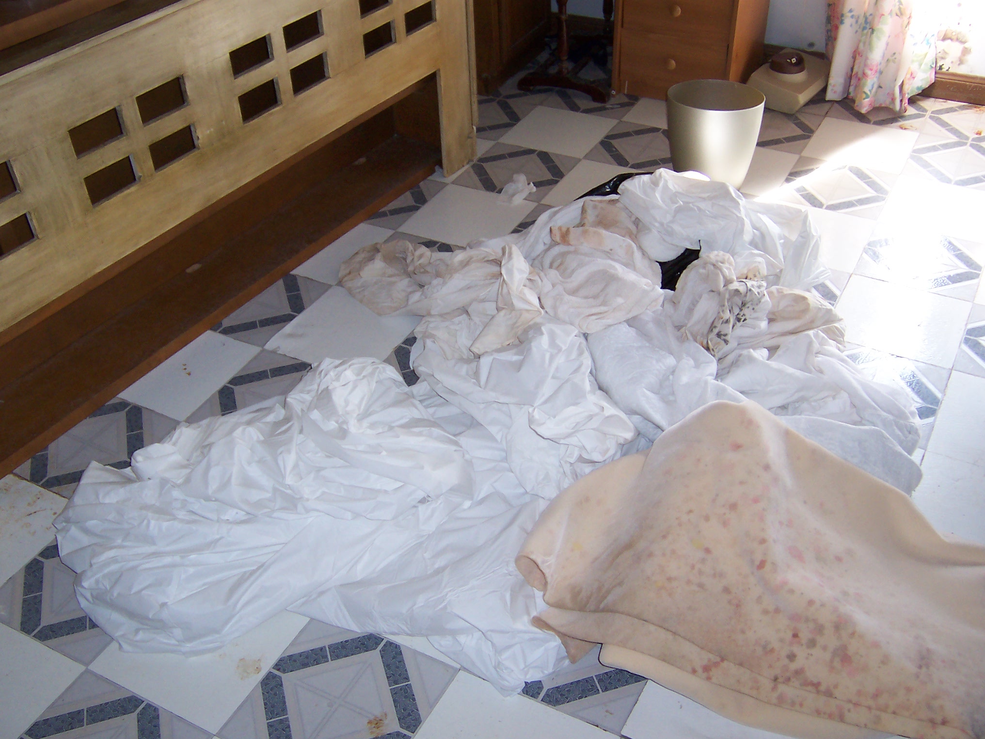 With the major outdoor areas cleared, we began tackling the master bedroom. Unfortunately, my father's adjustable bed mattress had some mold on it. But the mattress covers on my mother's mattress saved it from a similar fate. Both her closet and my father's closet has mold, but, in my father's case, stuff had been growing on his clothes since the '70s.