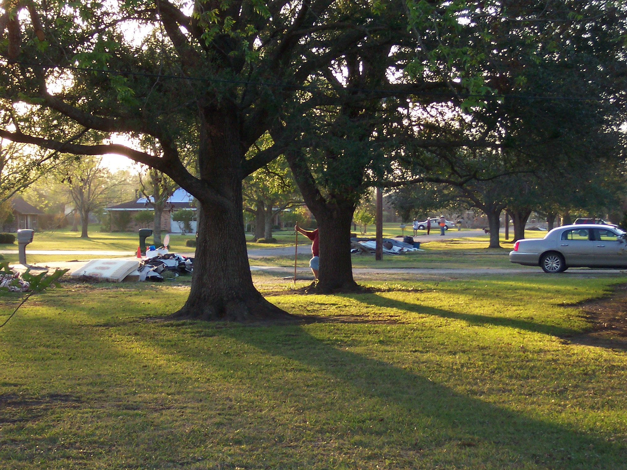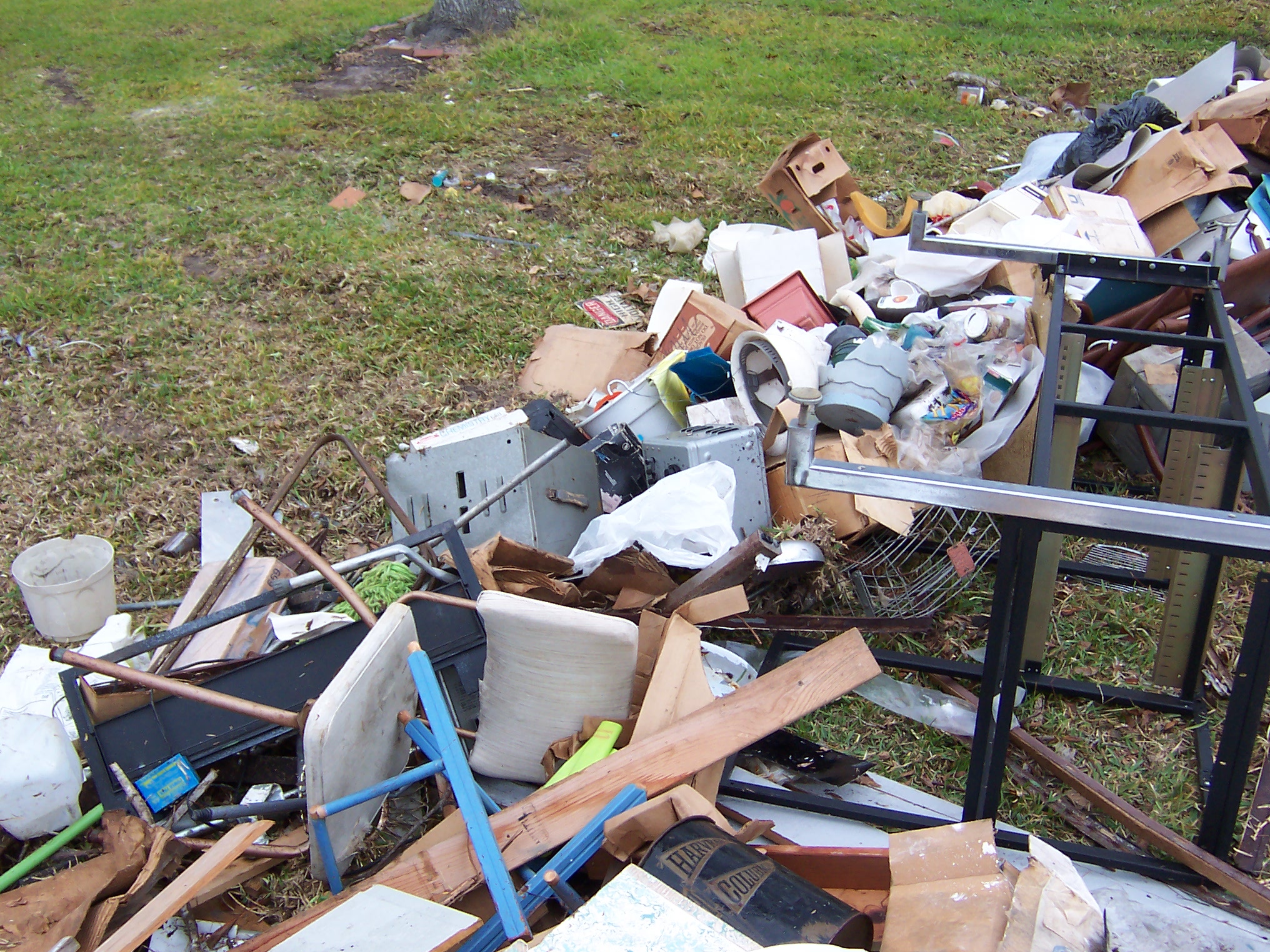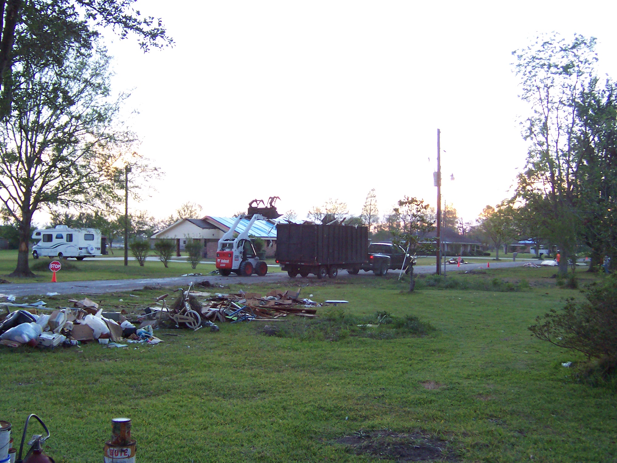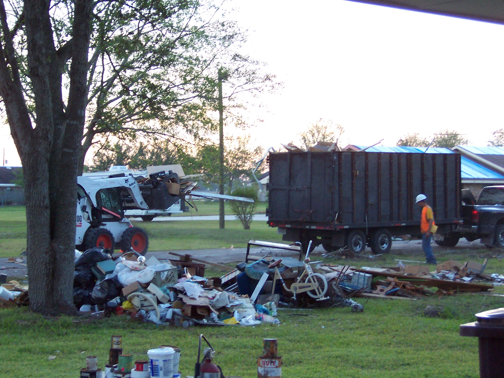 Much to my delight, contractors for the long-rumored FEMA pickup arrived and began hauling off the huge pile of garbage that had accumulated on the curb. Also to my surprise, most of it compressed very nicely and fit in a single trailer. The only things they refused to haul off were old tires and toxic chemicals.