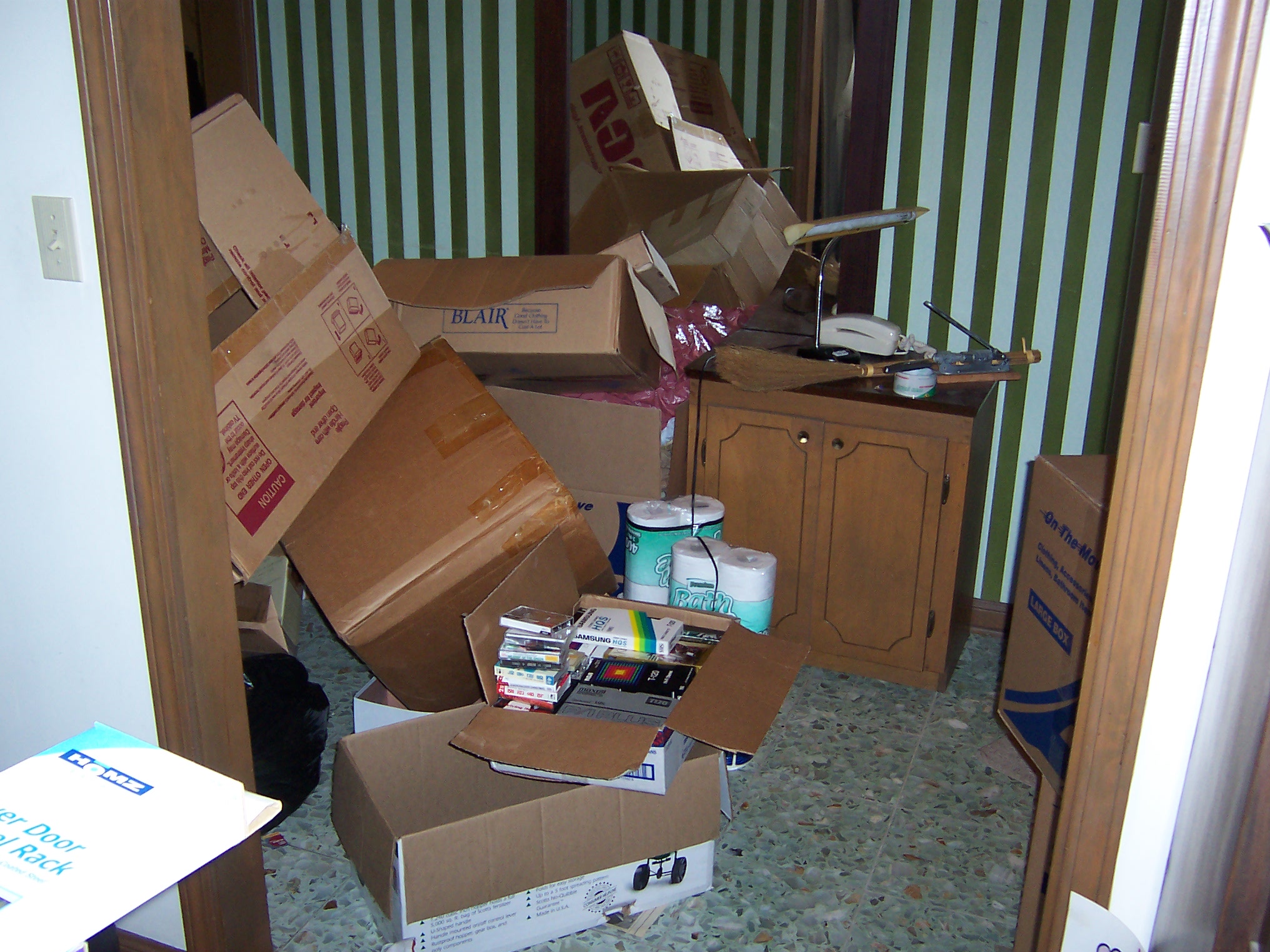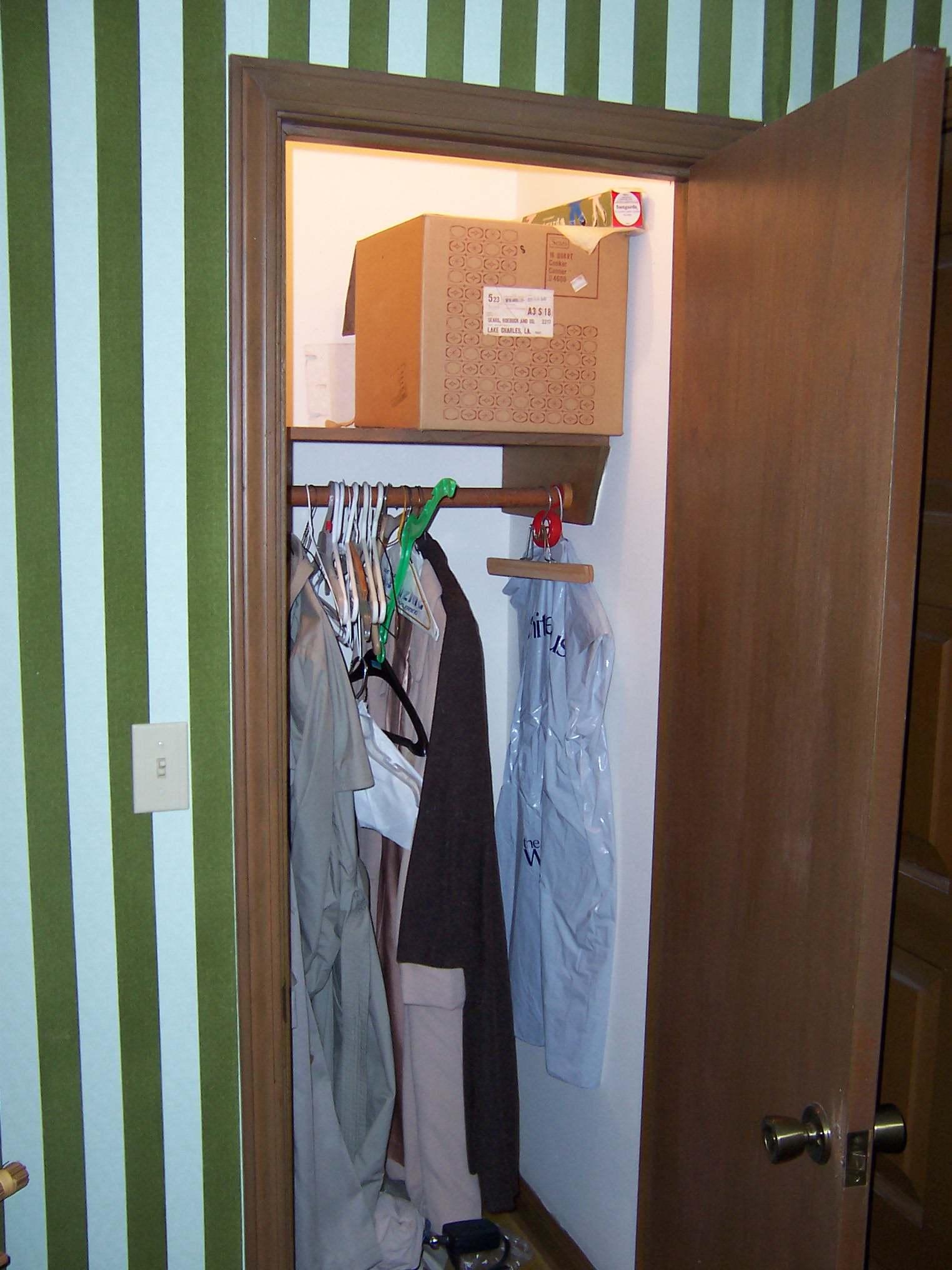 In moving, the surprises usually come in closets. They are used for hiding things people don't want to think about, yet they must be dealt with at moving time. Thankfully, the Den closet and the foyer coat closet were not too densely packed and each were freed of their ancient contents in about an hour.