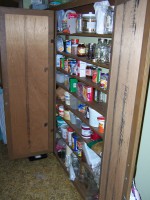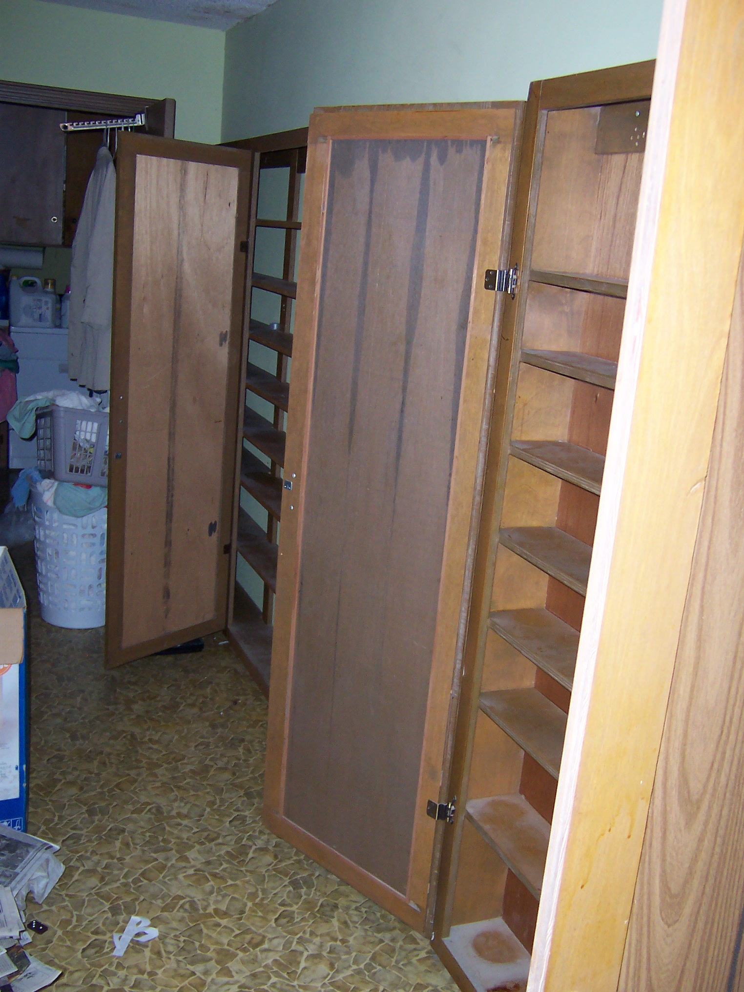 The bigger task of the day was the "pantry" closets. My father built enclosed shelves along the rear hallway wall for food storage. Taking after her own mother, my mother was an avid gardener and canner in the '70s and amassed a large number of mason jars and ordinary food jars that she would reuse for canning. As the fires of domestic food production waned for her in the '80s, the jars remained on the shelves, supplanted by various other foodstuffs and containers that were kept around in case they could find reuse some day. They never did and November 15, 2005 was the end of the road. In keeping with my mother's wishes, the mason jars were wrapped and packed, but pretty much everything out got bagged and sent to the curb.