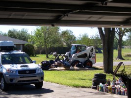 Thursday was devoted to further work on the sewing room, which ultimately would not be completely emptied until our final day in the house. As unessential as most of the contents of that room were, the amount of time spent packing its contents was extensive. And it's hard to imagine putting my mom's wedding dress or my dad's graduation robe out on the street for such an ignominious end.