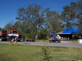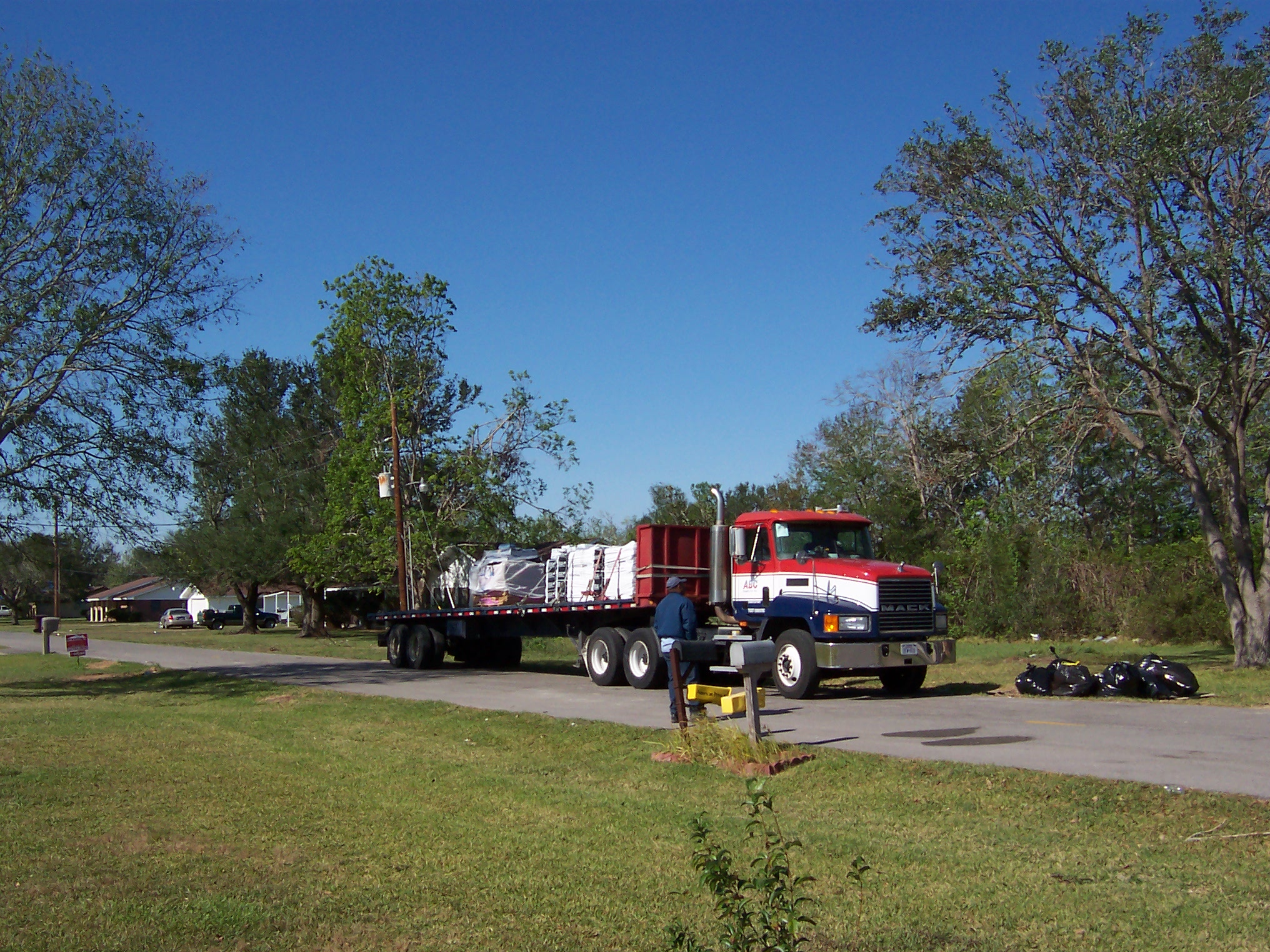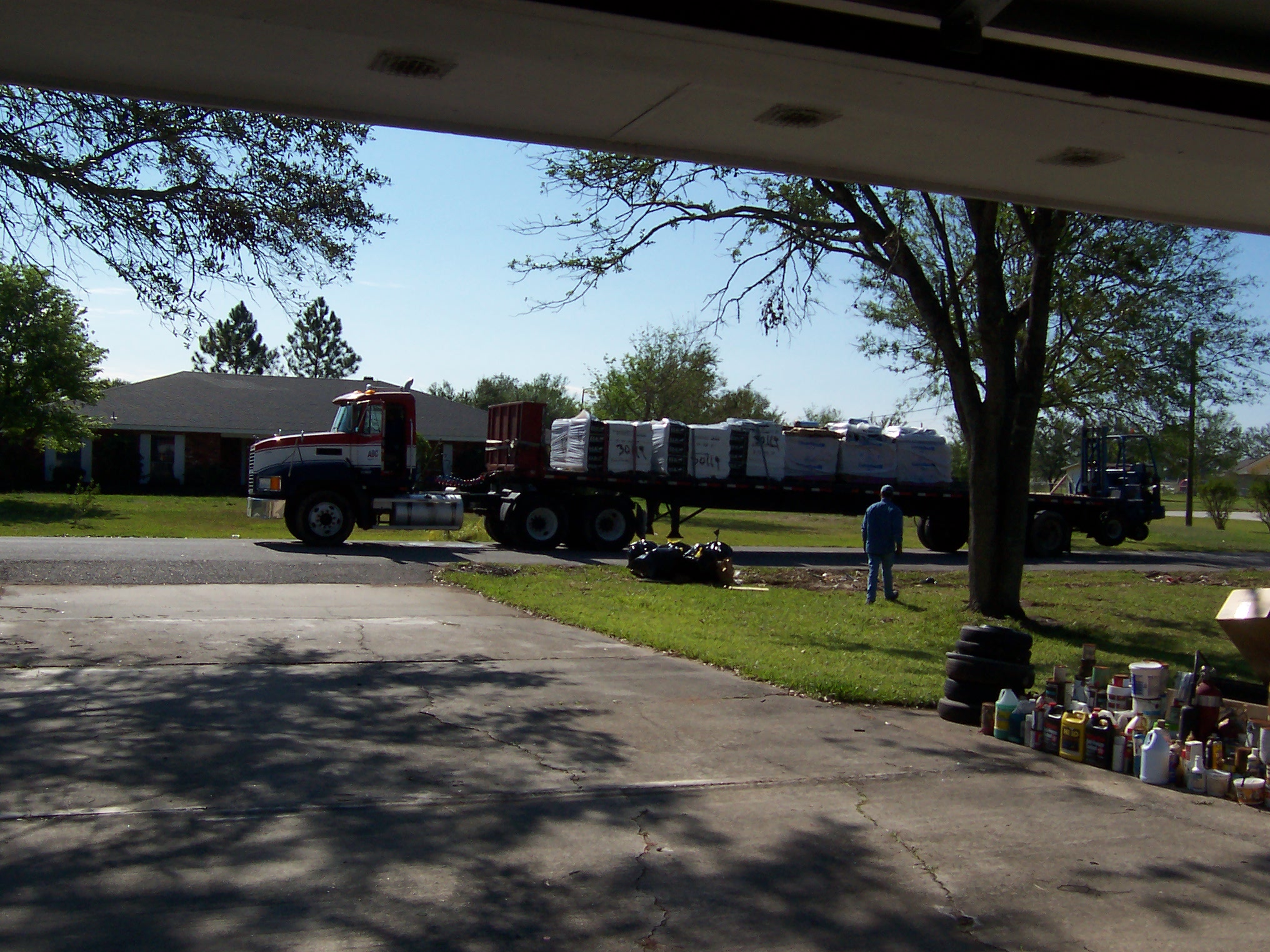 When we contracted my cousin to perform the house repairs, we all assumed that he would handle everything and leave us free to move and live our lives. It turned out that getting building materials in that part of the country were harder to acquire then expected. While Sean had tentatively planned on starting work on 11/14, he ran into a legal dispute in Missouri between his client and the developer of his client's neighborhood over the color of the shingles he was installing. Shingles also became a delaying factor for us as the only outlet in our area carrying our desired color (ABC Building Supply in Nederland, TX) was facing extraordinary lines at the store and would not accept our contractor's credit card over the phone. They were also backed up for delivery. They finally were able to schedule a delivery on November 17, but required payment on the spot (strangely, via check which was much less secure or verifiable than credit card). The shingles arrived on November 18, although they refused to take part of the order behind the house out of fear of getting stuck in our damp and rutted lawn.