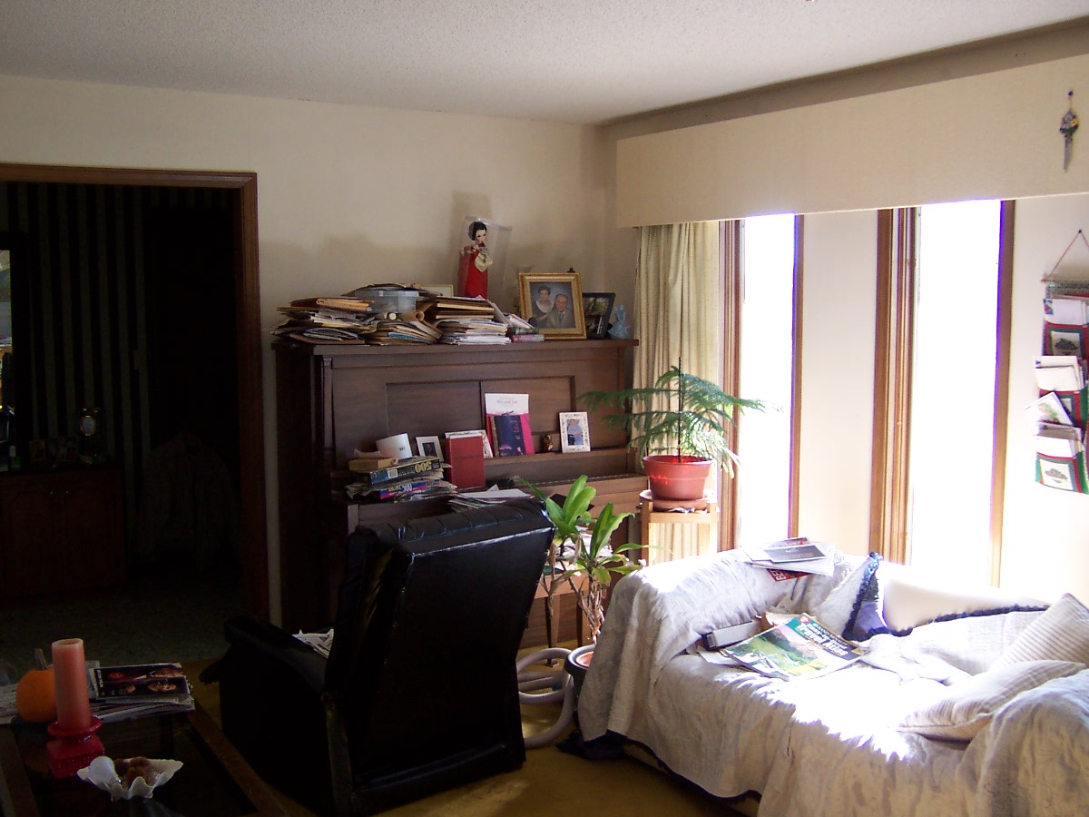 This cycle culminated in 1994 with my father's catastrophic hemorrhagic stroke, probably caused by untreated high blood pressure and a family history of stroke. My father was initially not expected to live and ended up staying in the hospital for six months. He had handled all the physical maintenance of the house as well as all the financial affairs and the chaos of his life was reflected in the disorganization of all associated paperwork. This left my mother quite unprepared to deal with the maintenance of the home as well as overseeing his care at the hospital. Shirking my familial responsibilities, I continued my faltering acting career in New York City as my mother undertook the leviathan task of caring at home for a stroke victim. Surprisingly, mom managed to hold it together for 11 years, although the decline of the house and the disorder of it's contents steadily progressed throughout that time.