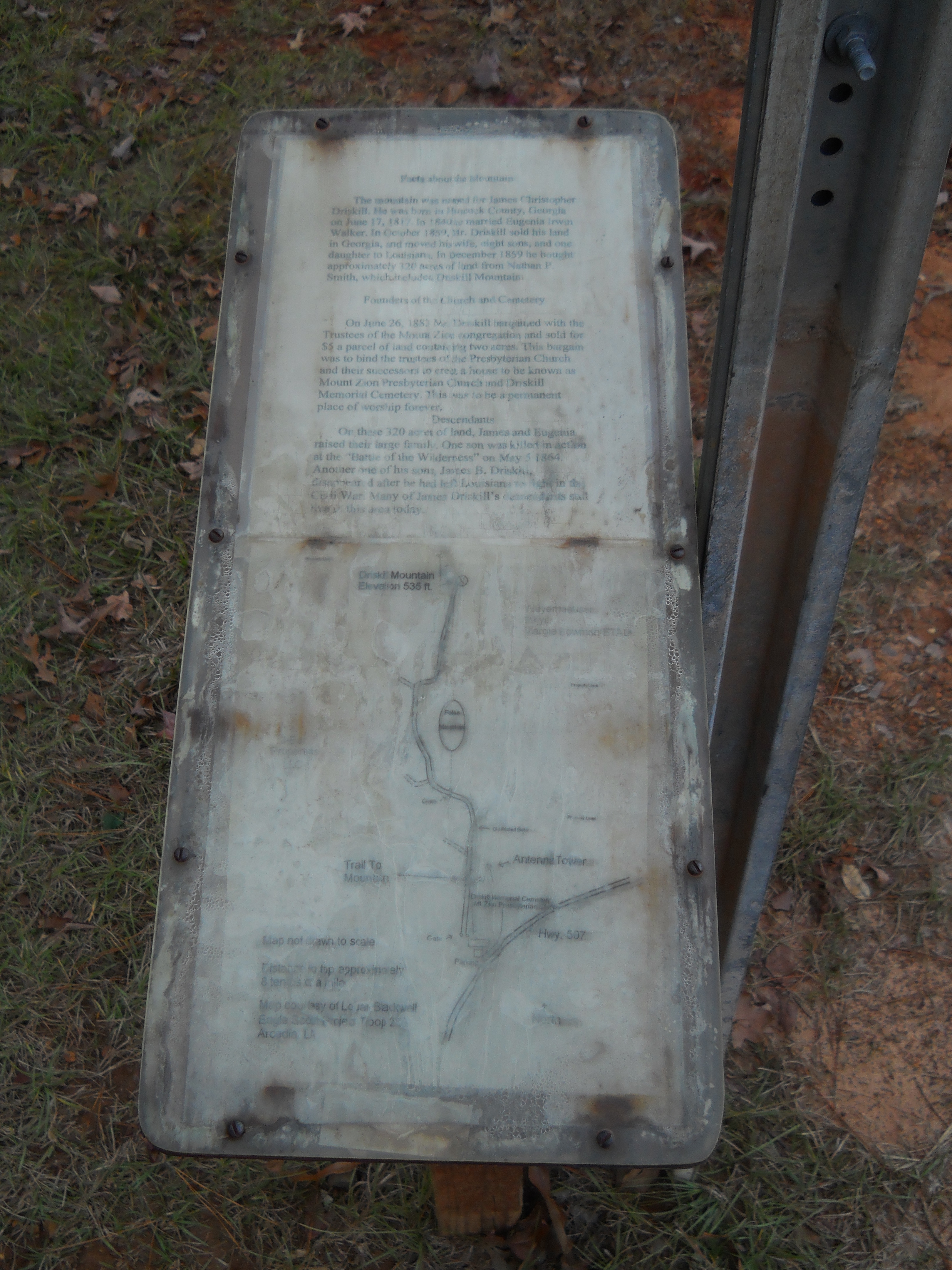 Driskill Mountain is the highest point in Louisiana at 535 feet above sea level. Louisiana is not known for its mountainous topography, so it should be no surprise that its summit is not that impressive - although the drive through the woods out there is pleasant and, I assume, the hike up to the peak is probably quite nice as well. The mountain is named after James Christopher Driskill who came from Georgia and bought this 320-acre plot of land in 1859. In 1883, Driskill sold a two-acre parcel of land (along current LA highway 507) to Mount Zion Presbyterian Church with the agreement that it would remain a house of worship and cemetery in perpetuity.