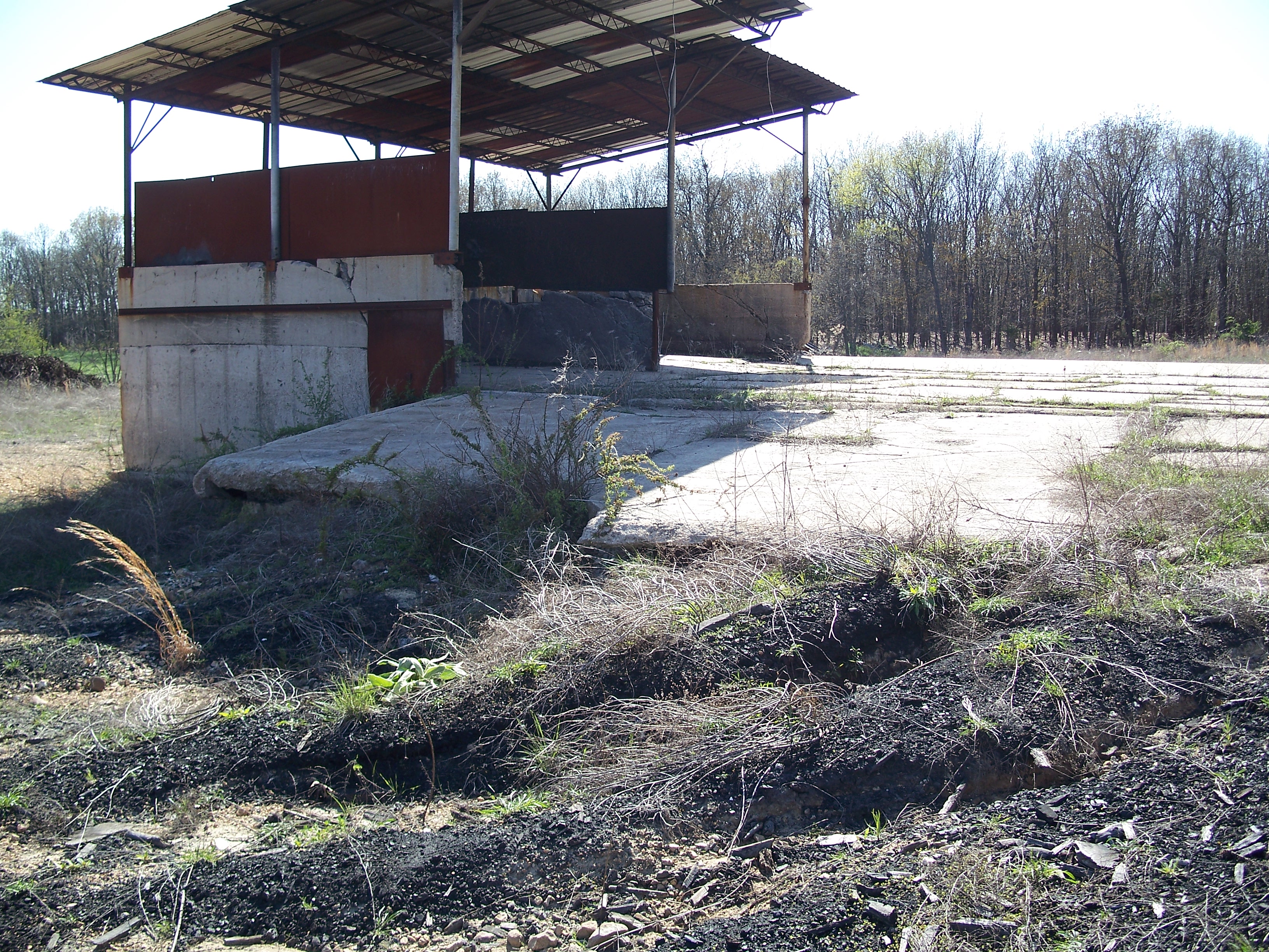 This was active charcoal plant around five miles from my grandparents' farm on K highway near the junction with Z highway in Dent County. I have very specific childhood memories of the burnt wood odor from our numerous visits to the farm. While the plant ceased operation sometime in the 1990s, the site still existed with no significant barriers to access when I took these photos in the spring of 2007. (Wikipedia entry on charcoal)