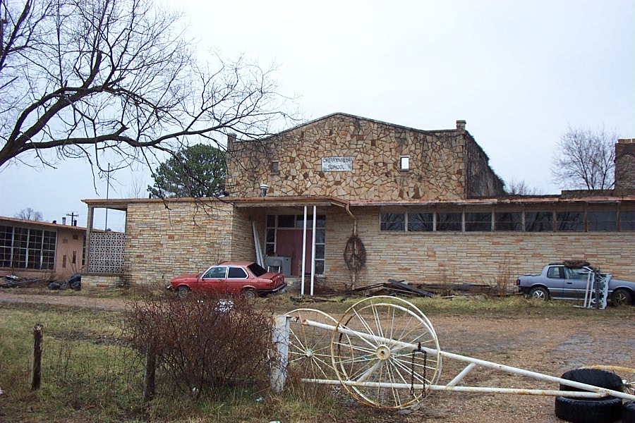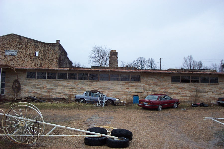 This abandoned building is located on Highway 19 in Crawford County, MO, about half an hour north of Salem, MO. From the presence of genealogical resources on the web, this was apparently a thriving small community in the early 20th century although I'm not certain of the history of this obviously mid-20th century building. As with so many other small rural communities in Missouri, it was probably closed as a result of shrinking population and/or consolidation with a school in a nearby community.