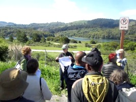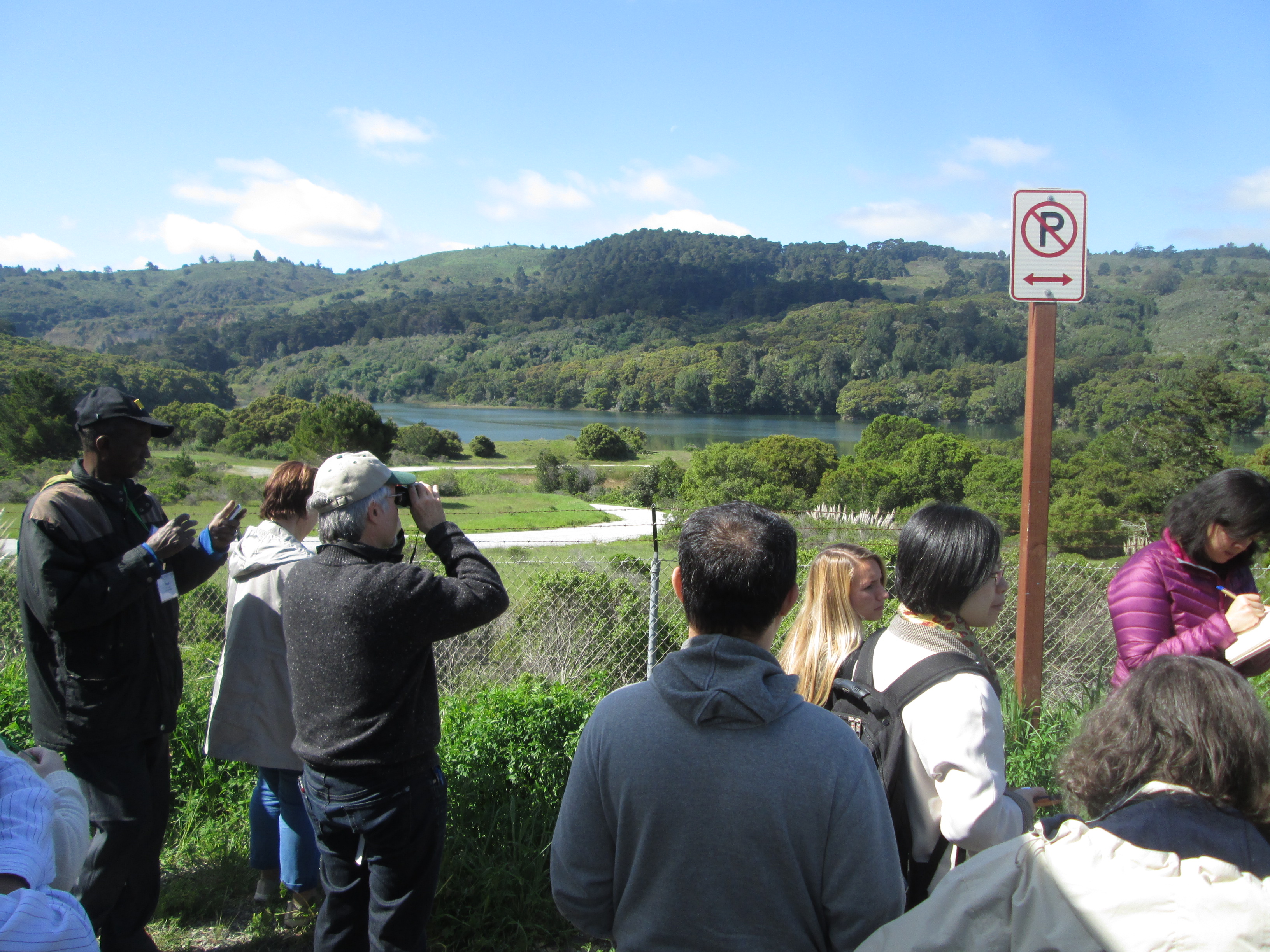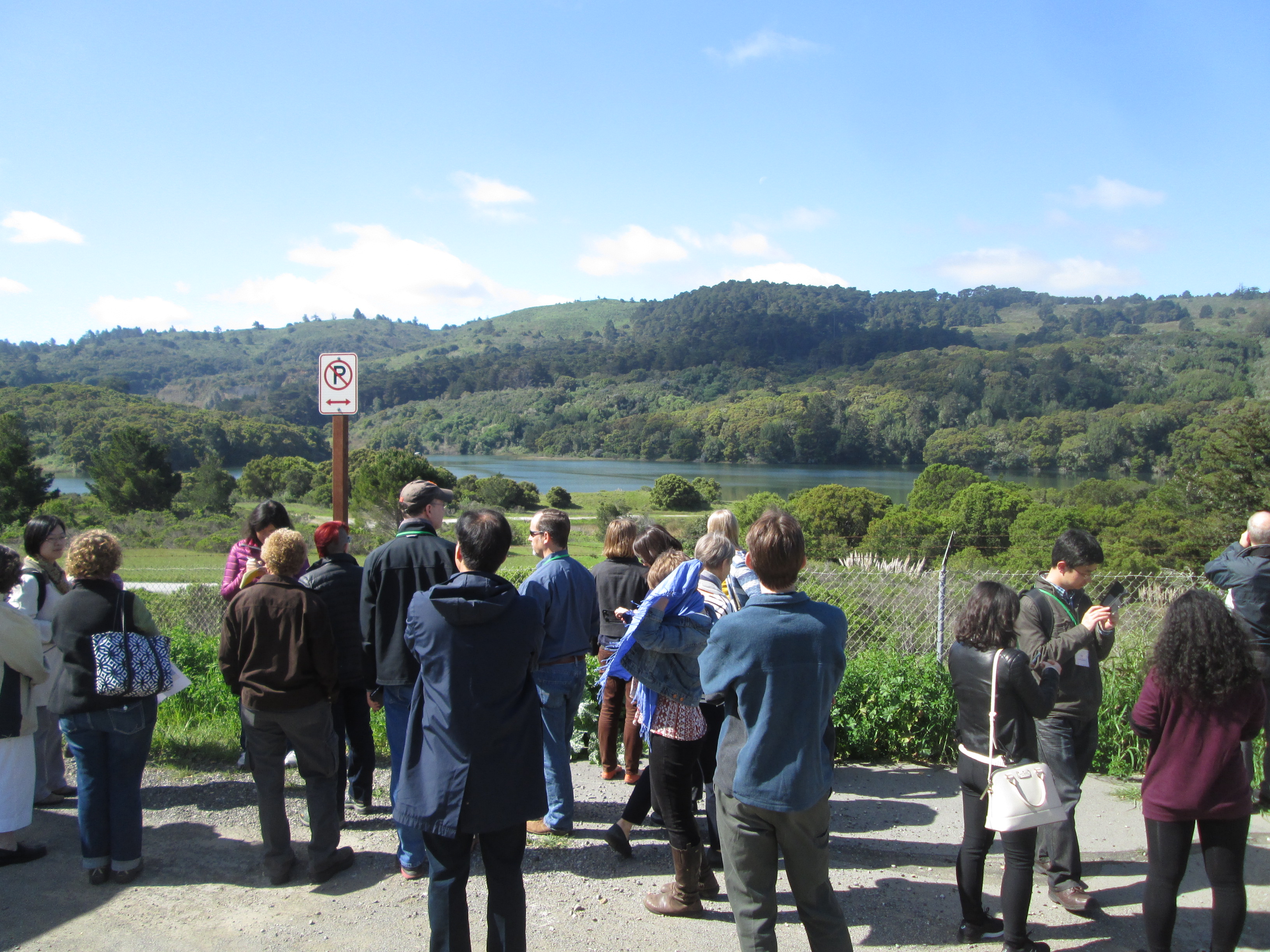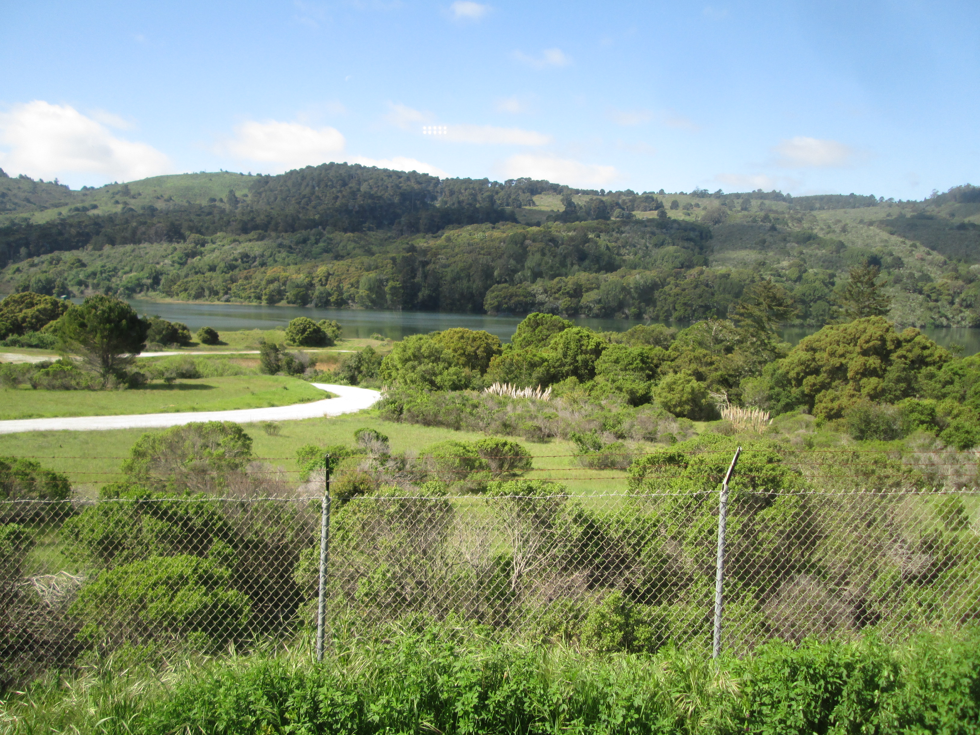 Crystal Springs Reservoir consists of a pair of artifical lakes in a rift valley over the San Andreas Fault. The upper (southern) reservoir was created with an earthen dam of Laguna Creek in 1877 and the lower (northern) reservoir was created with a concrete Crystal Springs Dam of San Mateo Creek in 1888. The reservoir is fed by local rainfall and water piped from the Hetch Hetchy Reservoir in Yosimite National Park.
